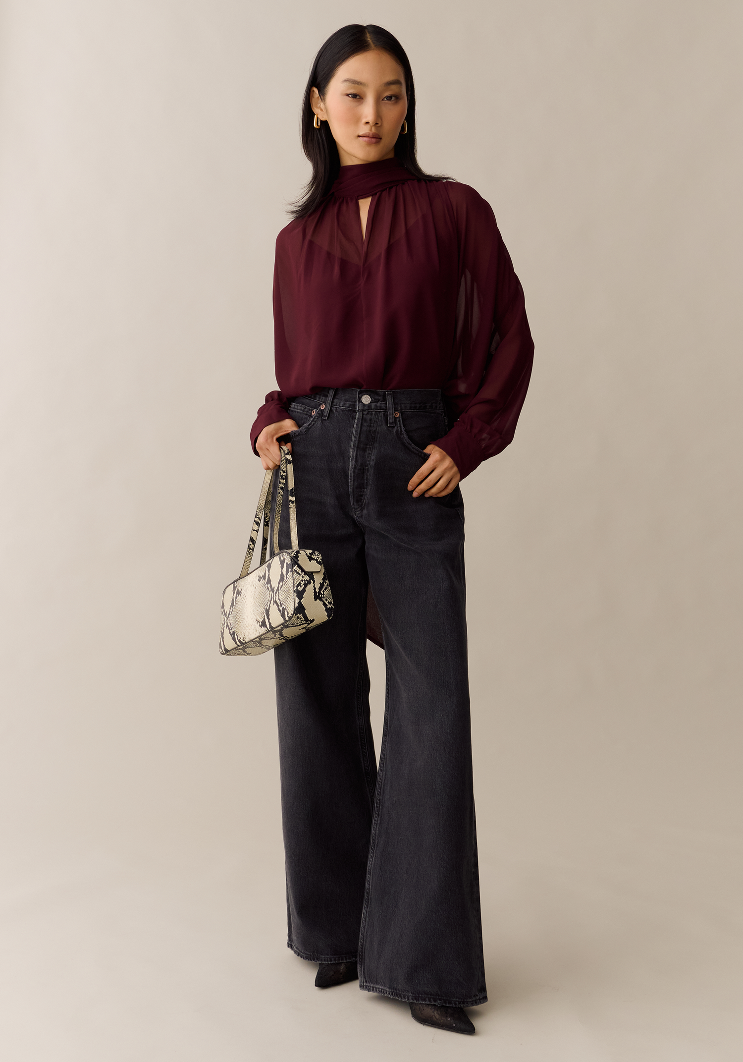 The Megan Top is crafted from light, airy chiffon in a rich, vibrant hue that adds effortless elegance to any wardrobe. Featuring versatile neck ties, this blouse can be styled in multiple ways—from a classic bow to a relaxed knot—allowing you to personalize your look with ease. Perfect for layering or wearing on its own, the Megan Top balances delicate fabric with adaptable design for sophisticated, everyday wear.