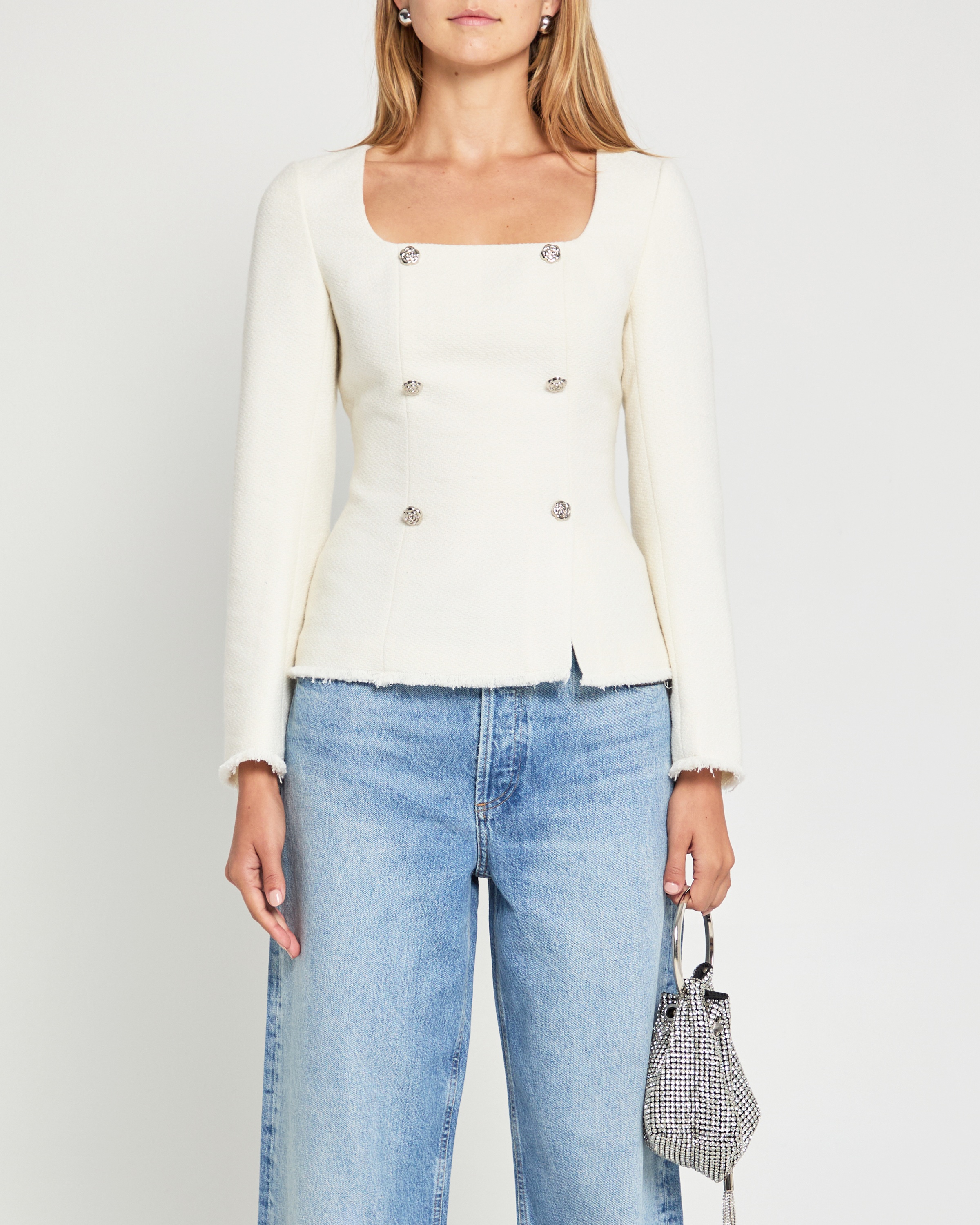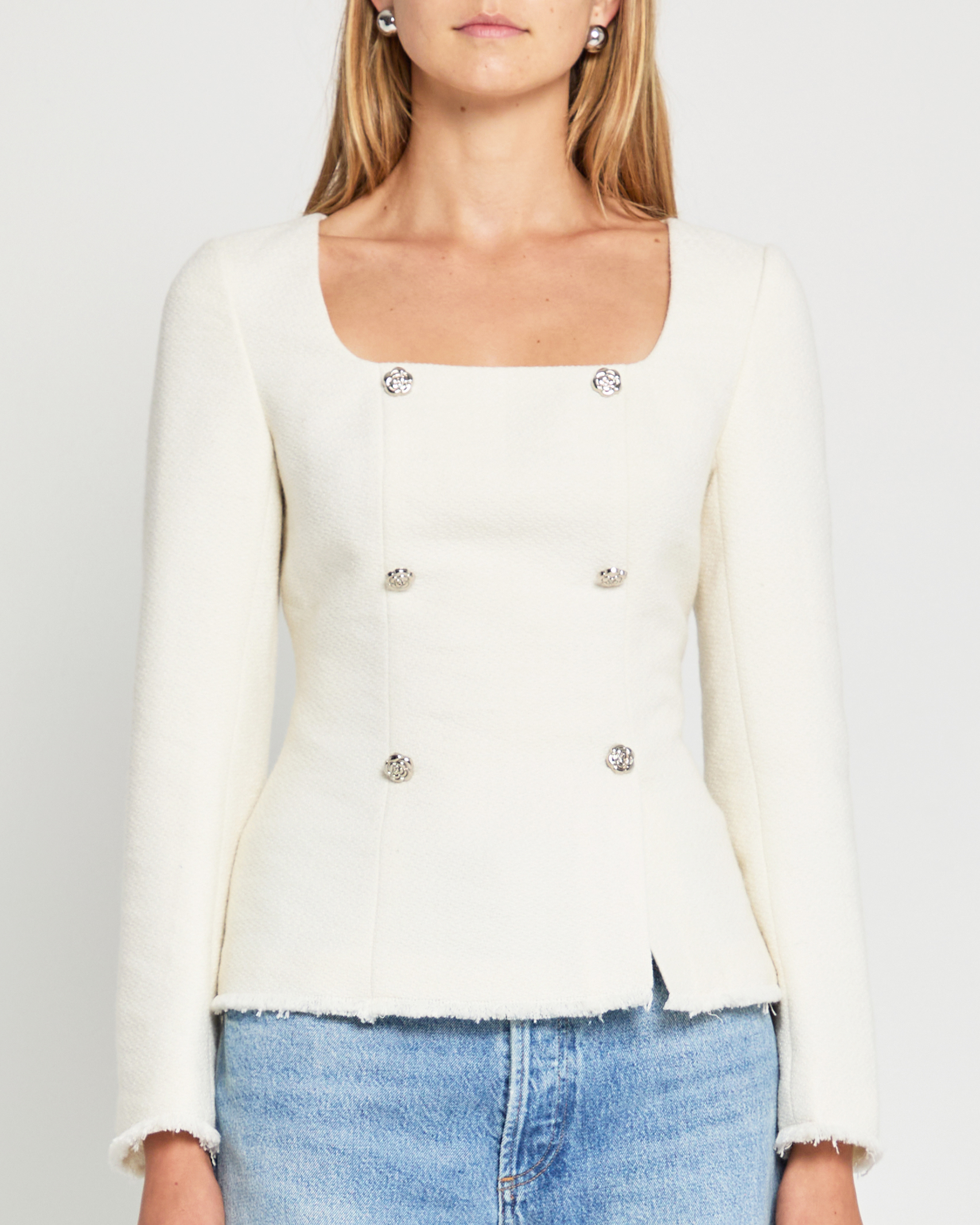 Experience chic sophistication with the Rai Top. Its structured design and thick fabric give a put-together look, while long sleeves and silver button details add a touch of elegance. Perfect for any occasion, this top exudes style and class.