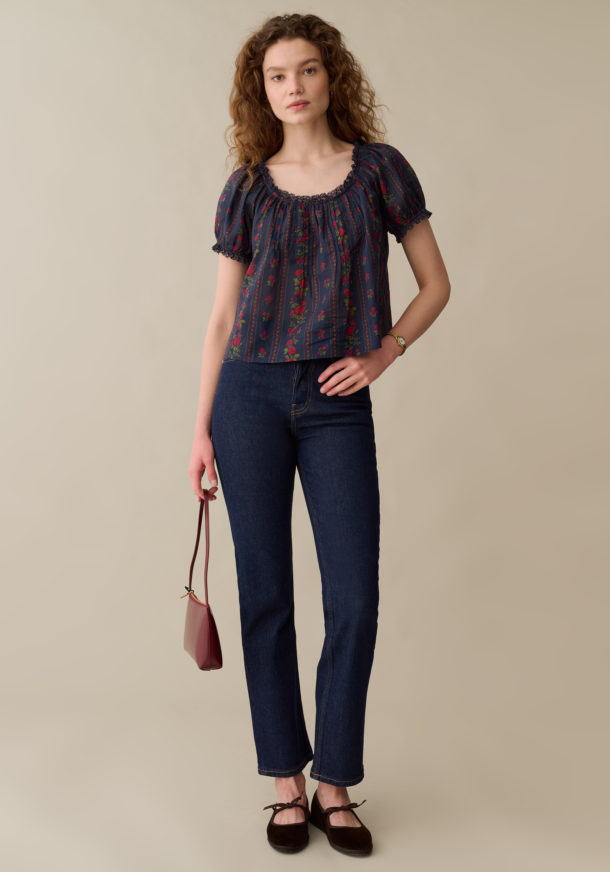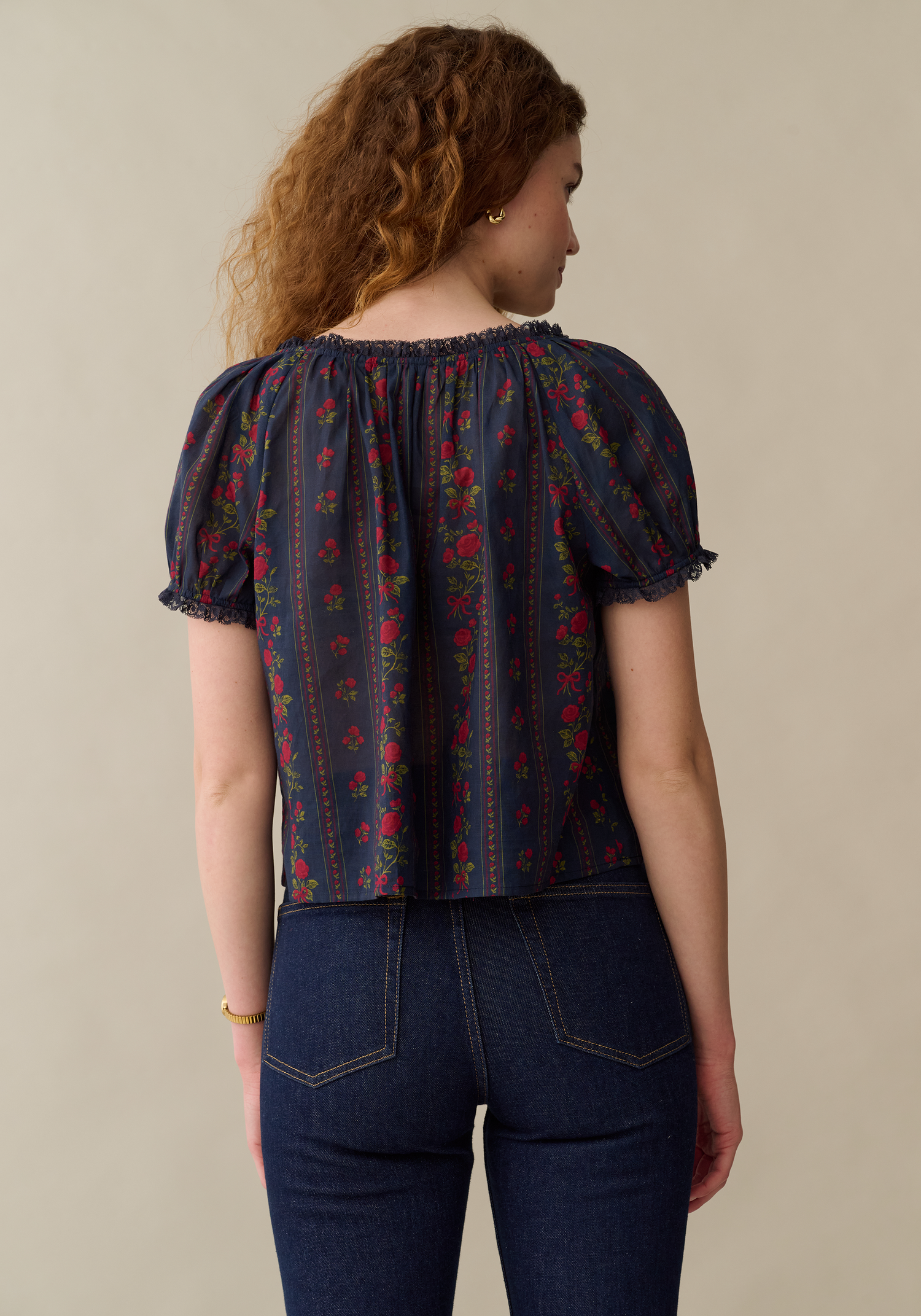 The Isaline Cotton Top is a delicately crafted blouse featuring charming puff sleeves and a light, airy cotton fabric that ensures comfort and breathability. Finished with dainty lace trim and sweet details for an easy, romantic look.