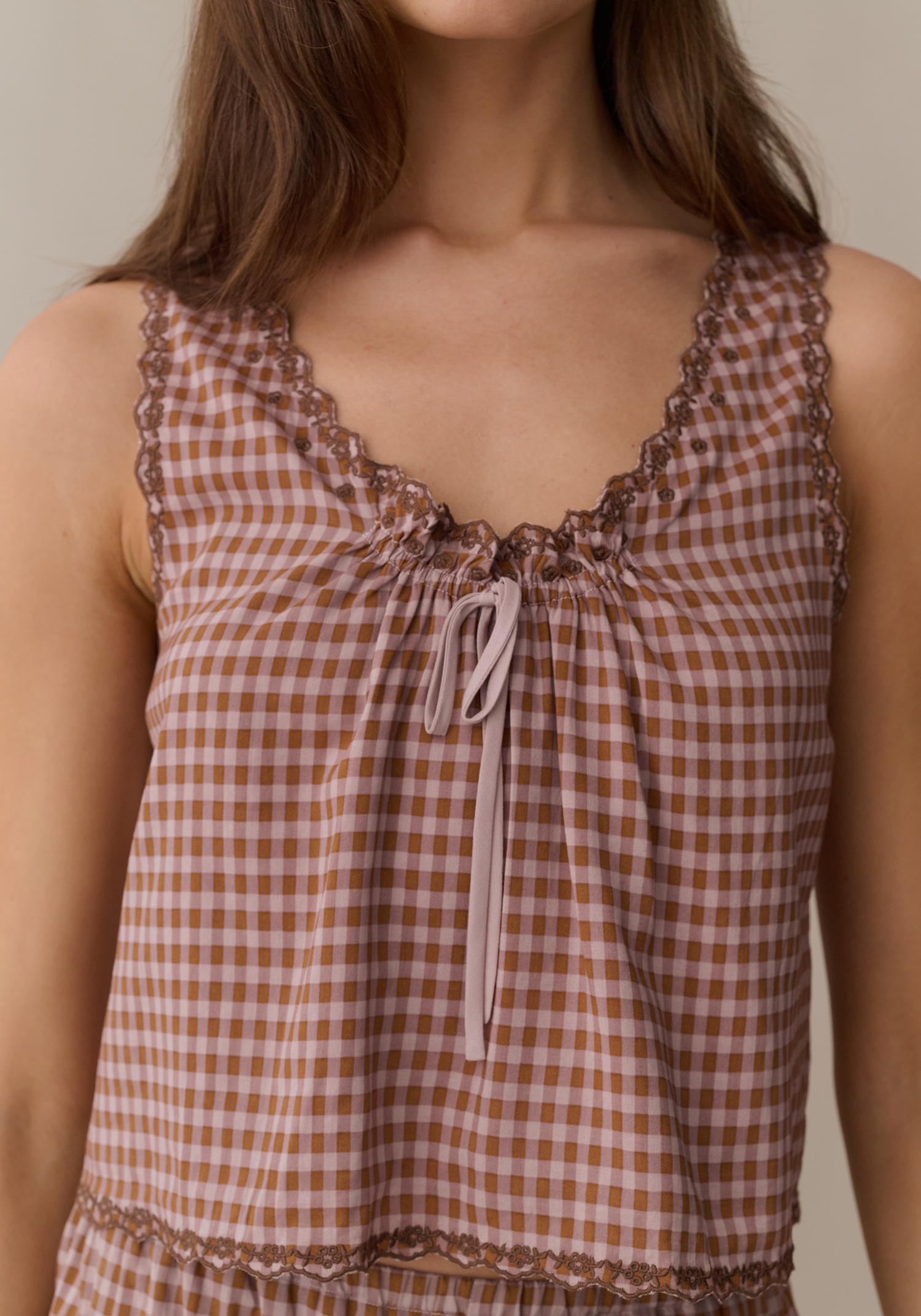 Introducing the Cora Top, the perfect pretty piece for lounging around or sitting in the sun. Done in a soft and airy cotton blend, this top features a slightly cropped and relaxed fit for ultimate comfort. Finished with adorable details like the front ribbon and embroidered trim.