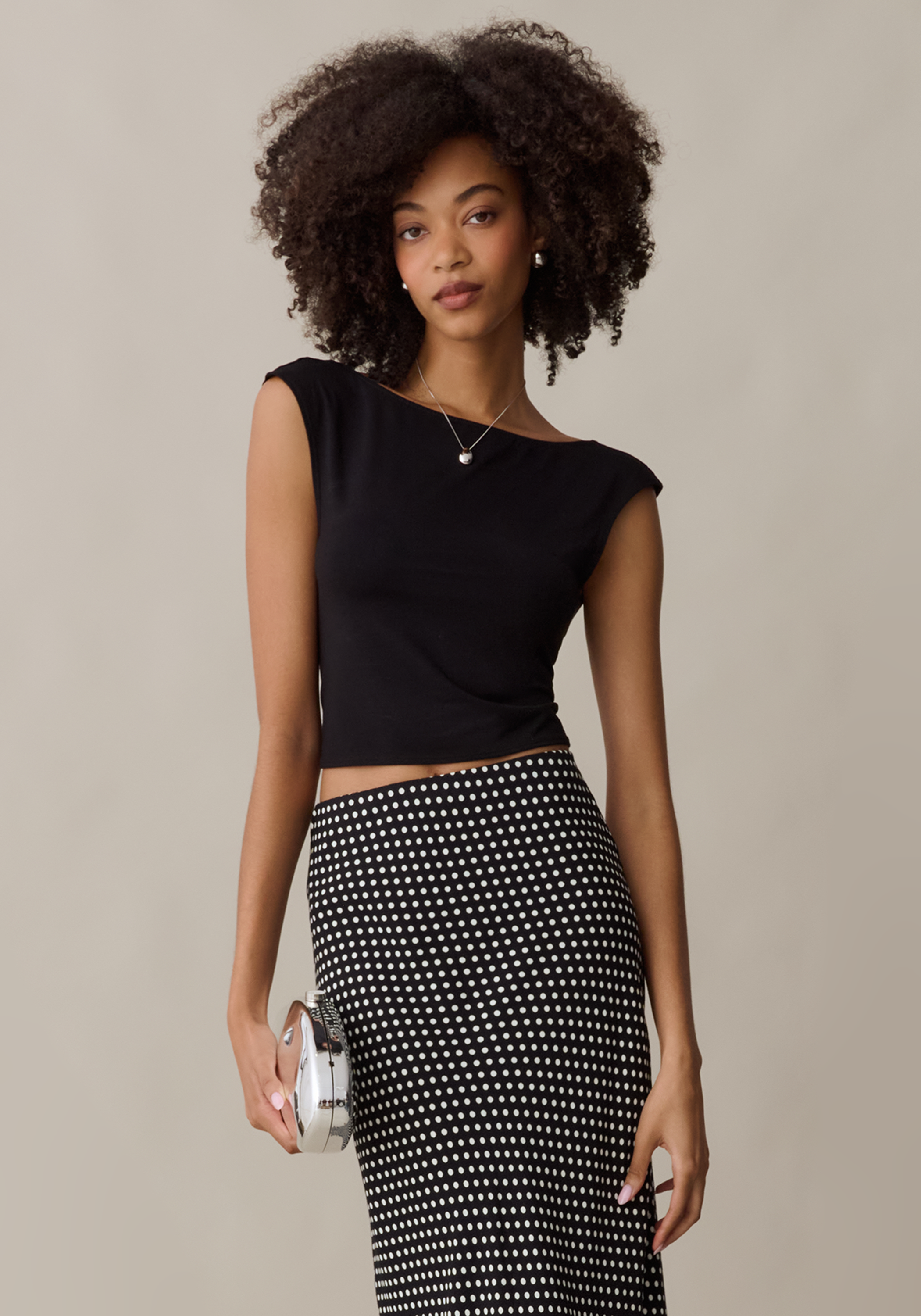 Made from a super soft and stretchy knit fabric, this top boasts a high neckline and low back for a chic and modern silhouette. The cropped fit makes it easy to style for any occasion. You won't want to take it off.