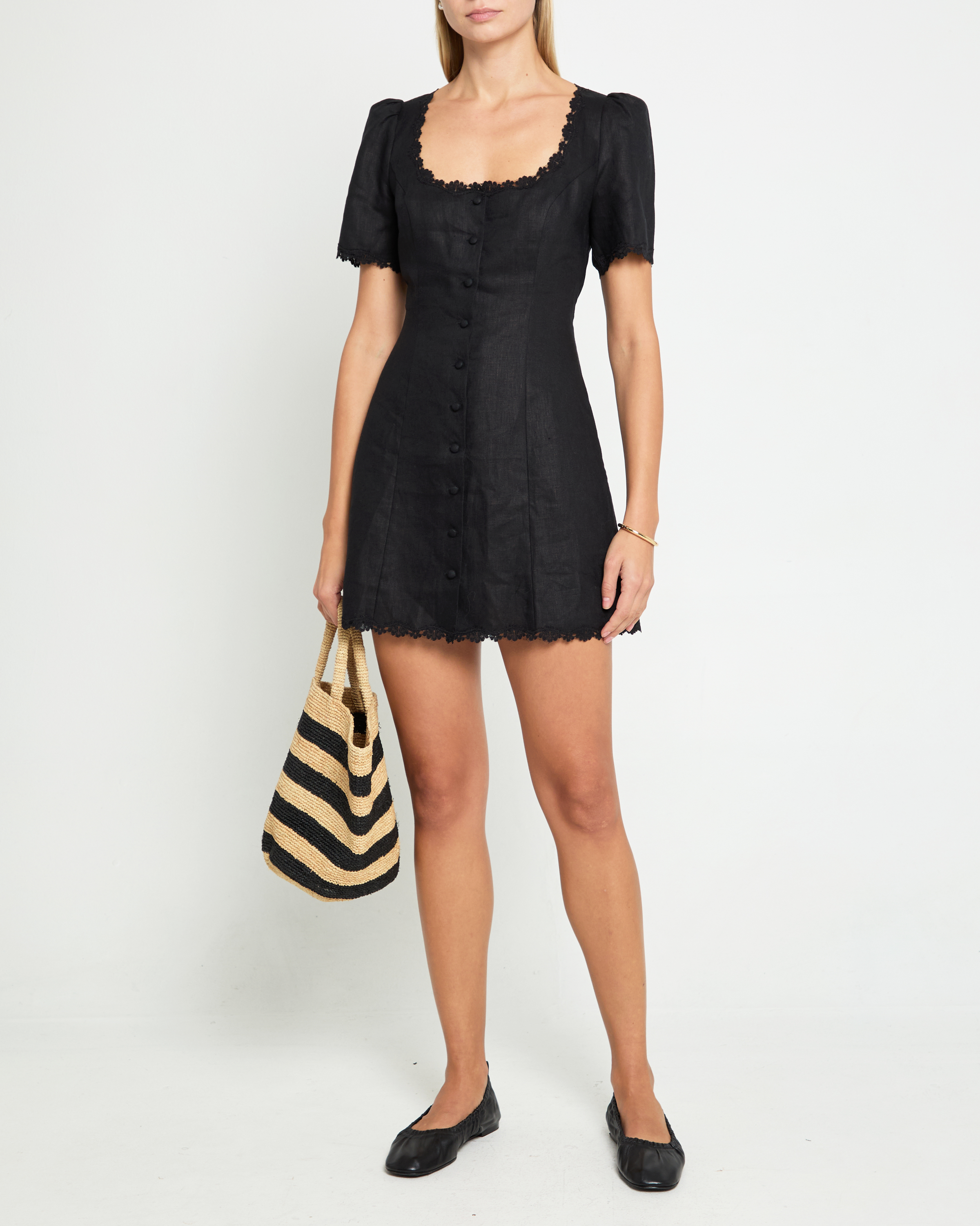 this dress is really cute, I am normally between a 2 and 4 and I ordered the 2. It fits well but is a bit tight on the arms/shoulders. The linen is thick and not see through and it seems well crafted!