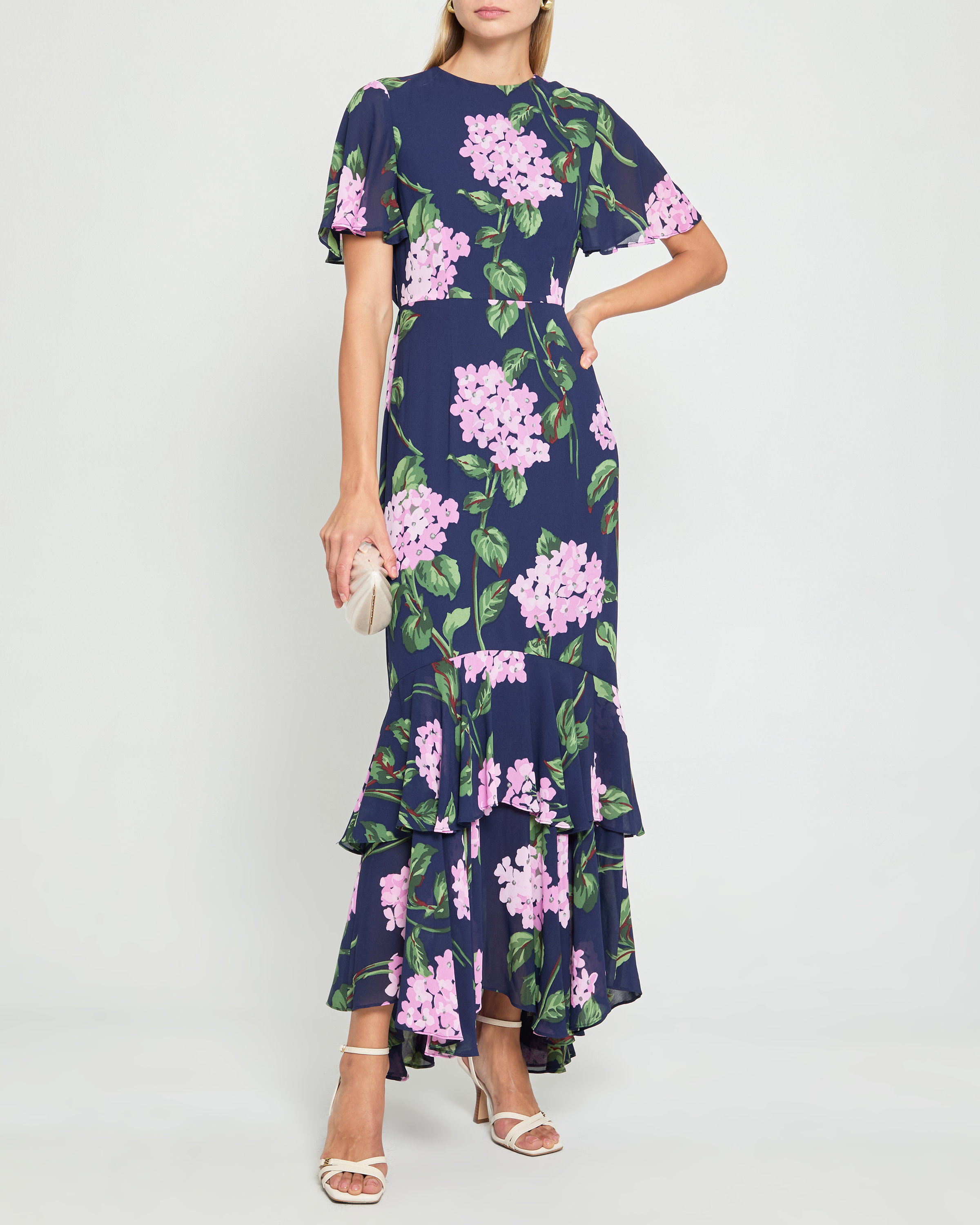 With a high neckline and a tiered skirt of floaty ruffles, this dress exudes elegance and charm. The gorgeous floral print adds a touch of femininity, while the adjustable tie ensures the perfect fit. Make a statement in this beautiful piece.