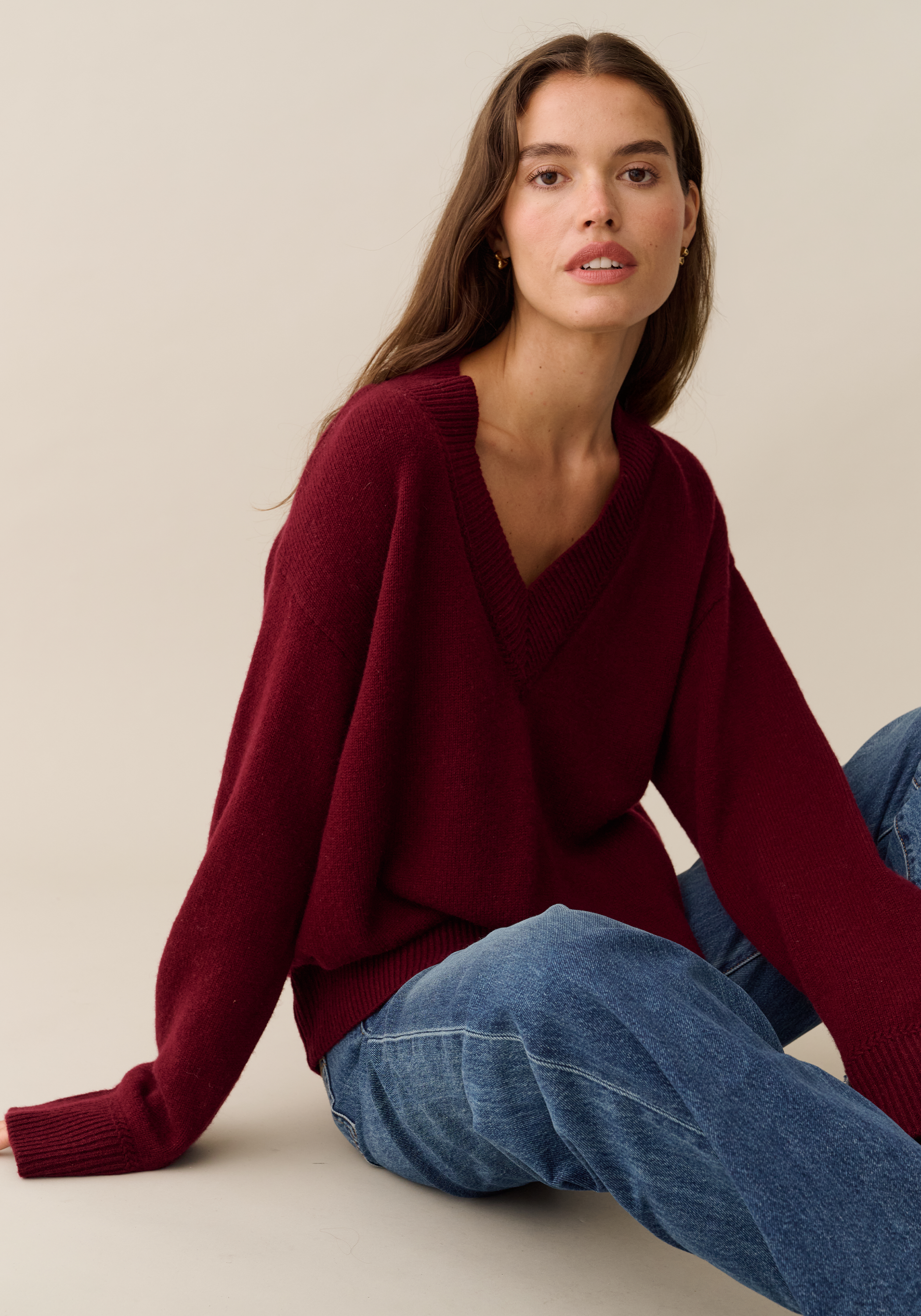 Expertly crafted from luxurious 100% merino wool, the Brenna sweater boasts a stunning and soft texture. Its relaxed v-neckline and large, comfortable fit make it a staple piece for any wardrobe. Stay cozy and stylish with this must-have sweater.
