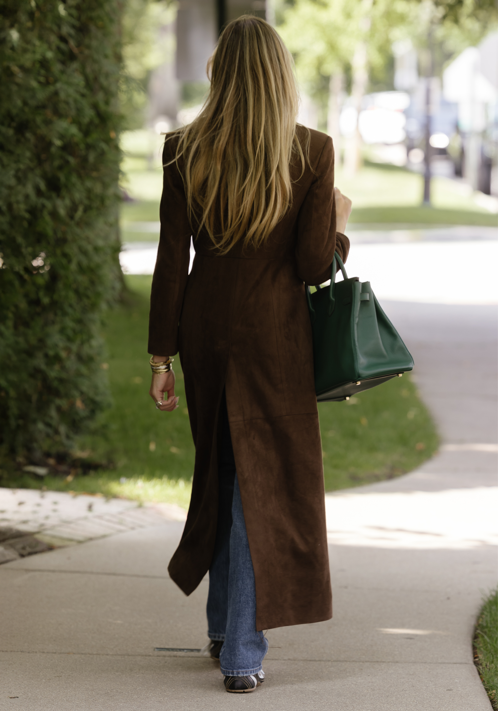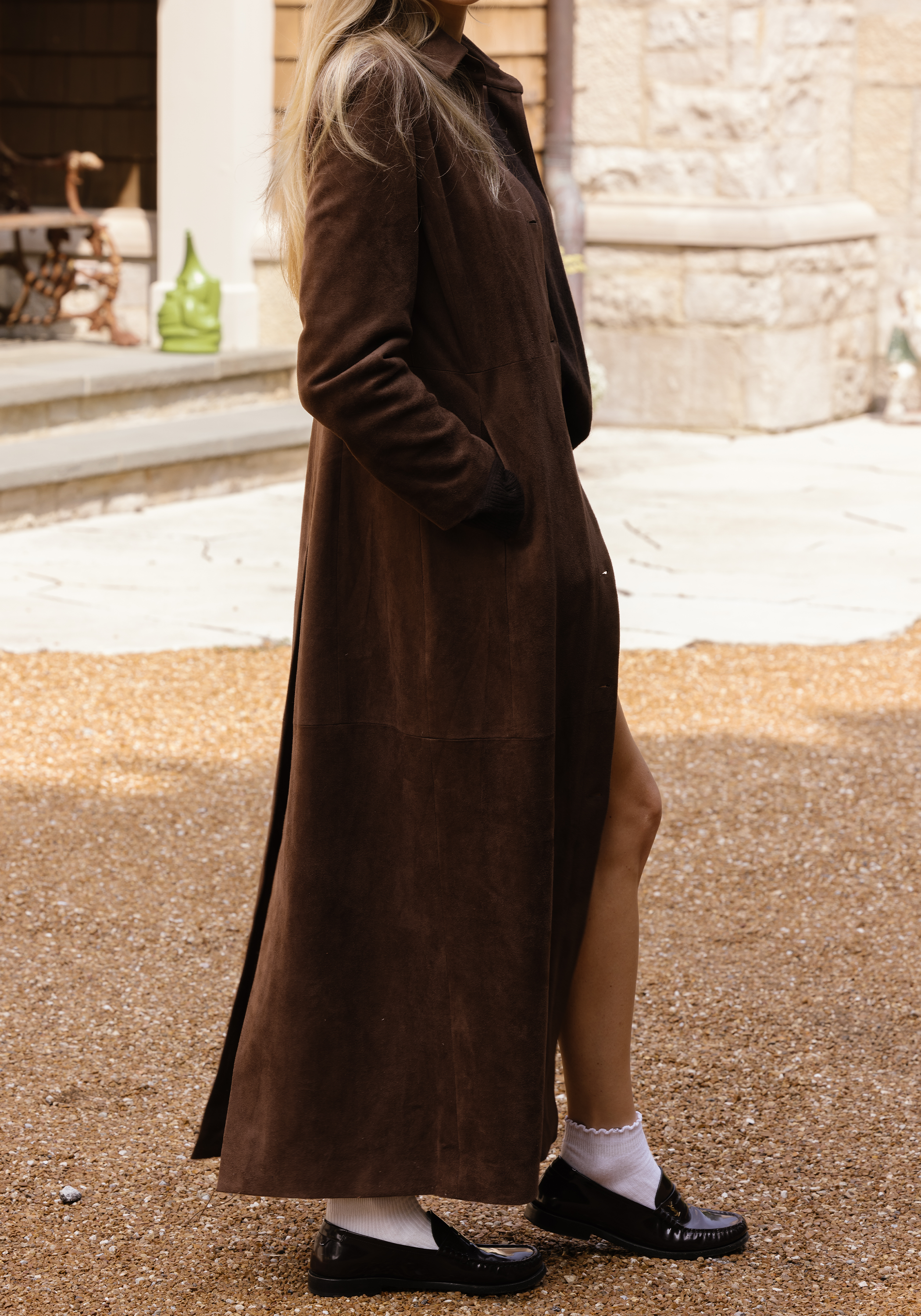 Nice shape, and quite long. I'm 5'6" and it is ankle-length on me. The suede feels very nice, but it's not thick or insulated at all of course, so it it's nice for transitional seasons but less so for very cold climates.