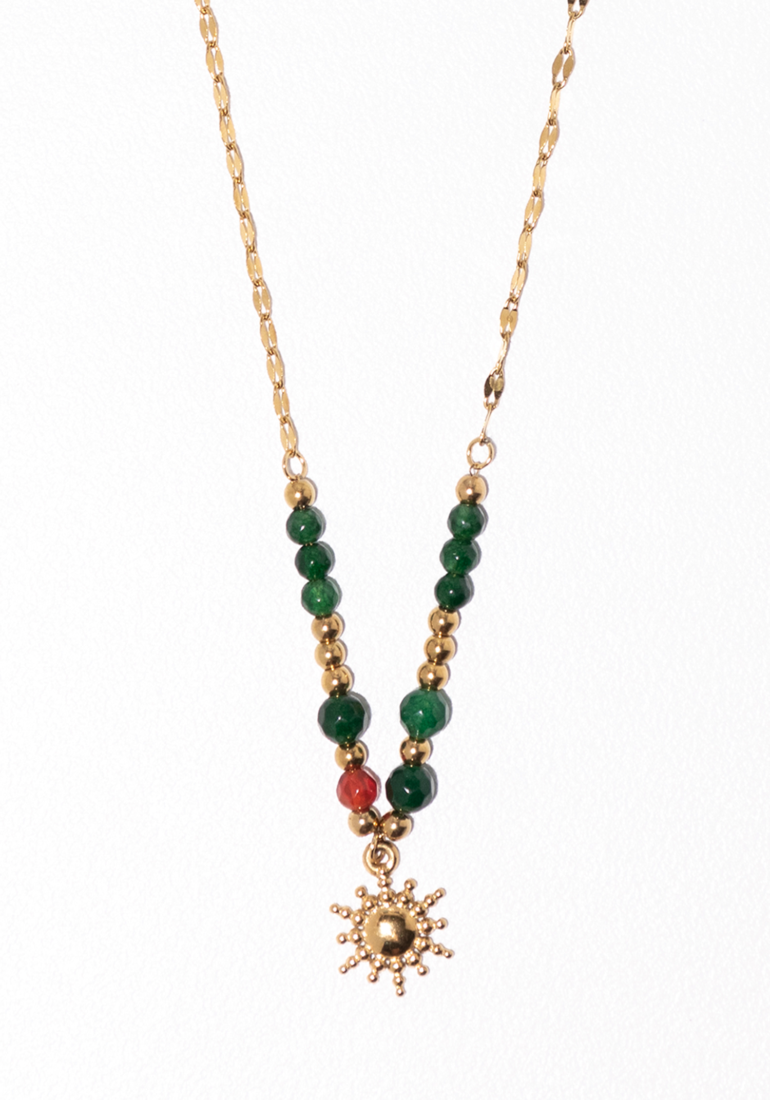 Elevate your style with the Sunkissed Beaded Pendant Necklace, featuring a golden sun charm that adds a radiant touch to any outfit. Its adjustable length ensures a perfect fit, whether worn alone or layered for a stacked look.