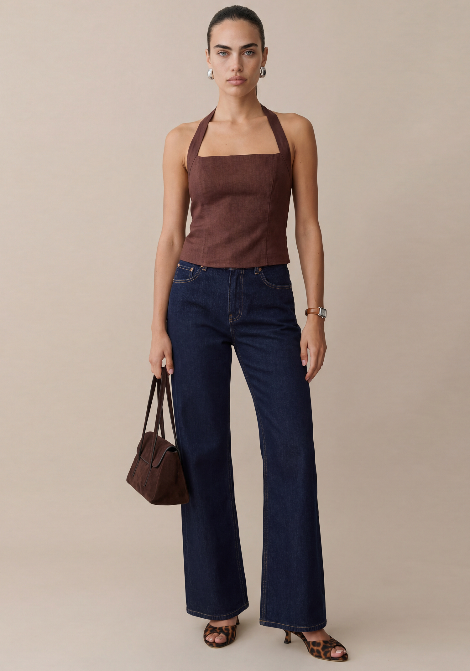 The Dixie Linen Top is a warm-weather staple with a flattering fit. Made from 100% linen, it features a tie halterneck and a clean, structured silhouette. Lightweight and breathable, it's an easy choice for sunny days and effortless styling.