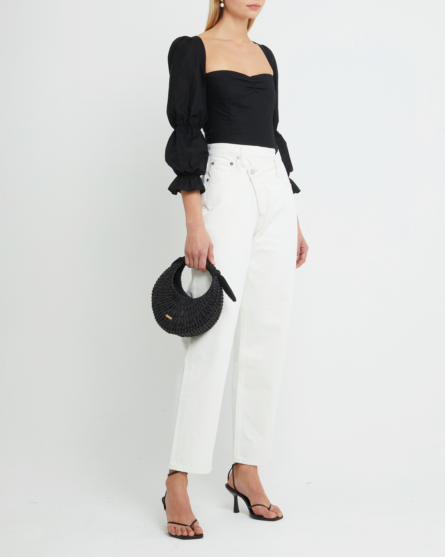 • Fourth image of Francesca Top, a black puff sleeve top, sweetheart neckline, puff sleeve, long sleeve, cap sleeve