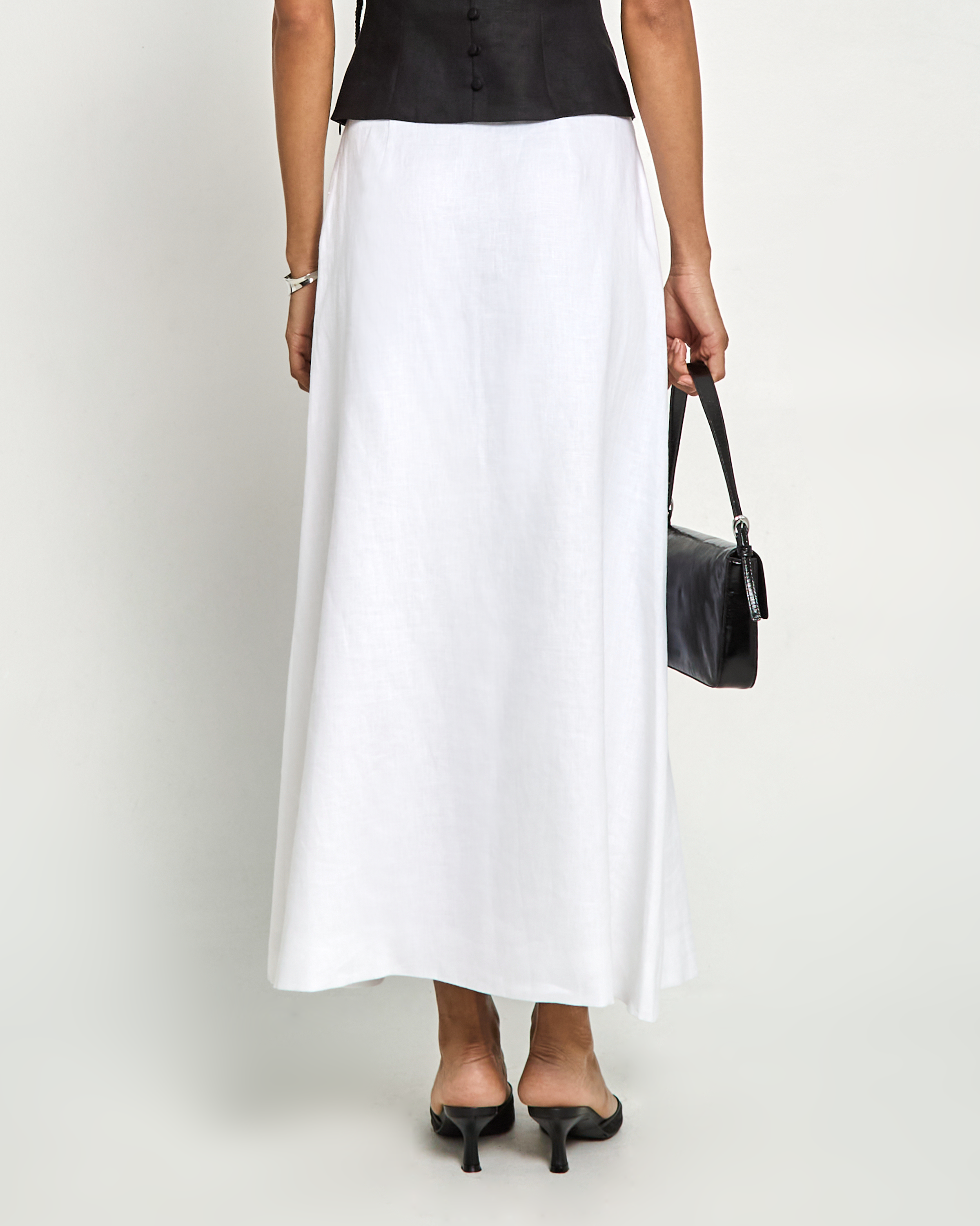 Expertly crafted from high-quality linen, the Sibel Linen Maxi Skirt is both versatile and gorgeous. With front buttons for adjustable styling, this sleek skirt can be dressed up or down for any occasion. Elevate your wardrobe with this timeless piece.