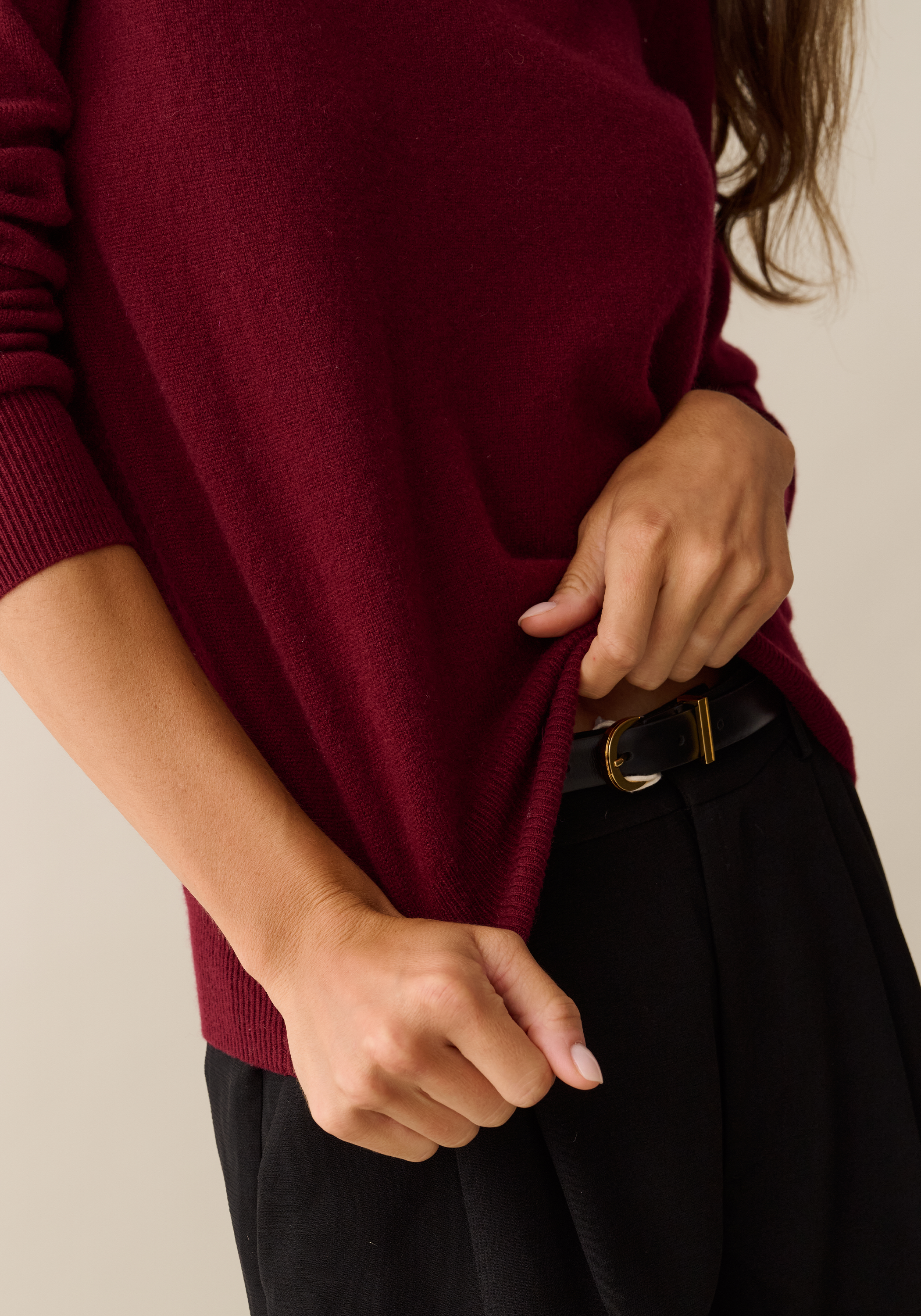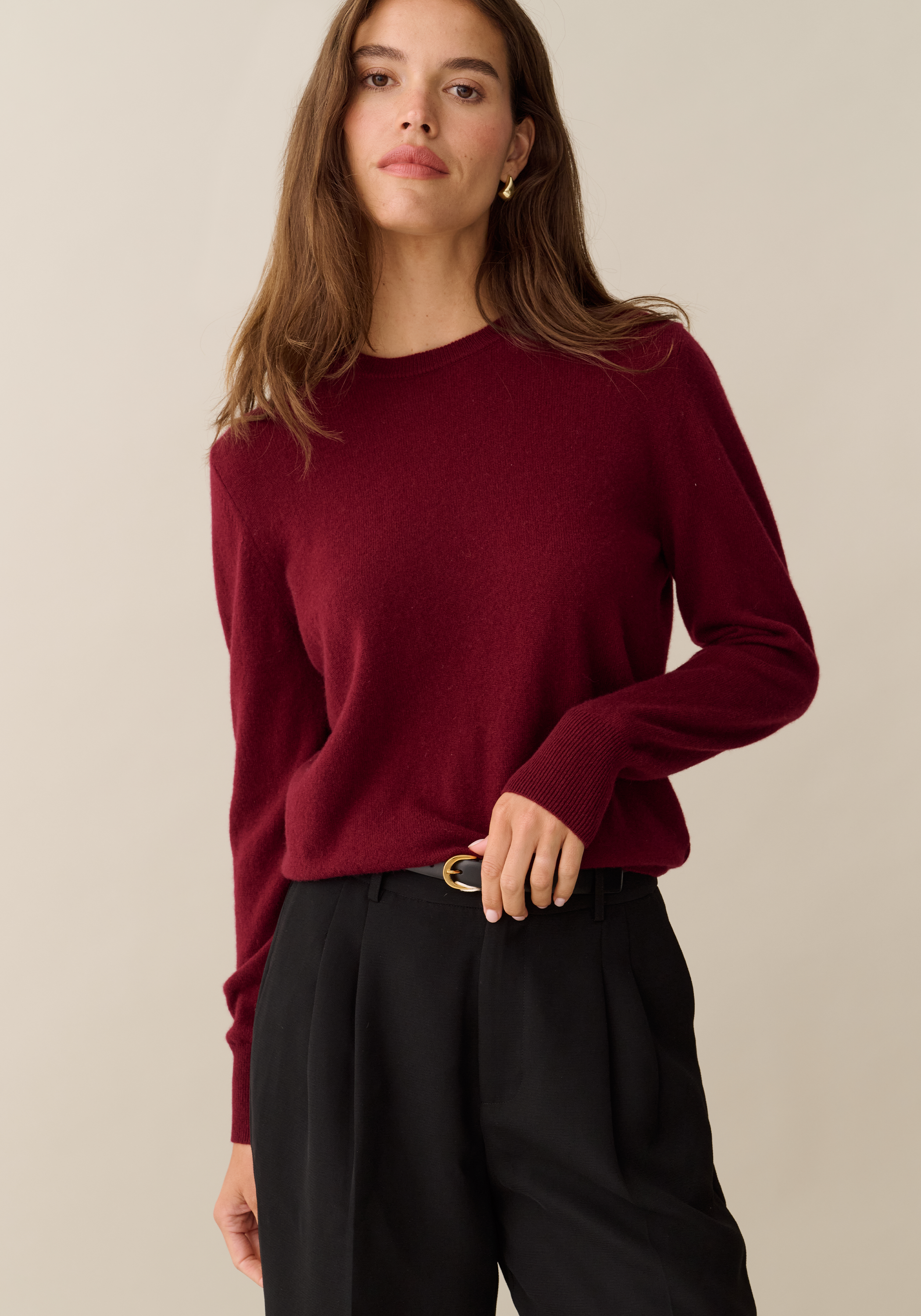 Feel cozy and look effortless in our classic, cashmere crewneck. Done with relaxed fit and ribbed knit hem, collar, and cuffs.