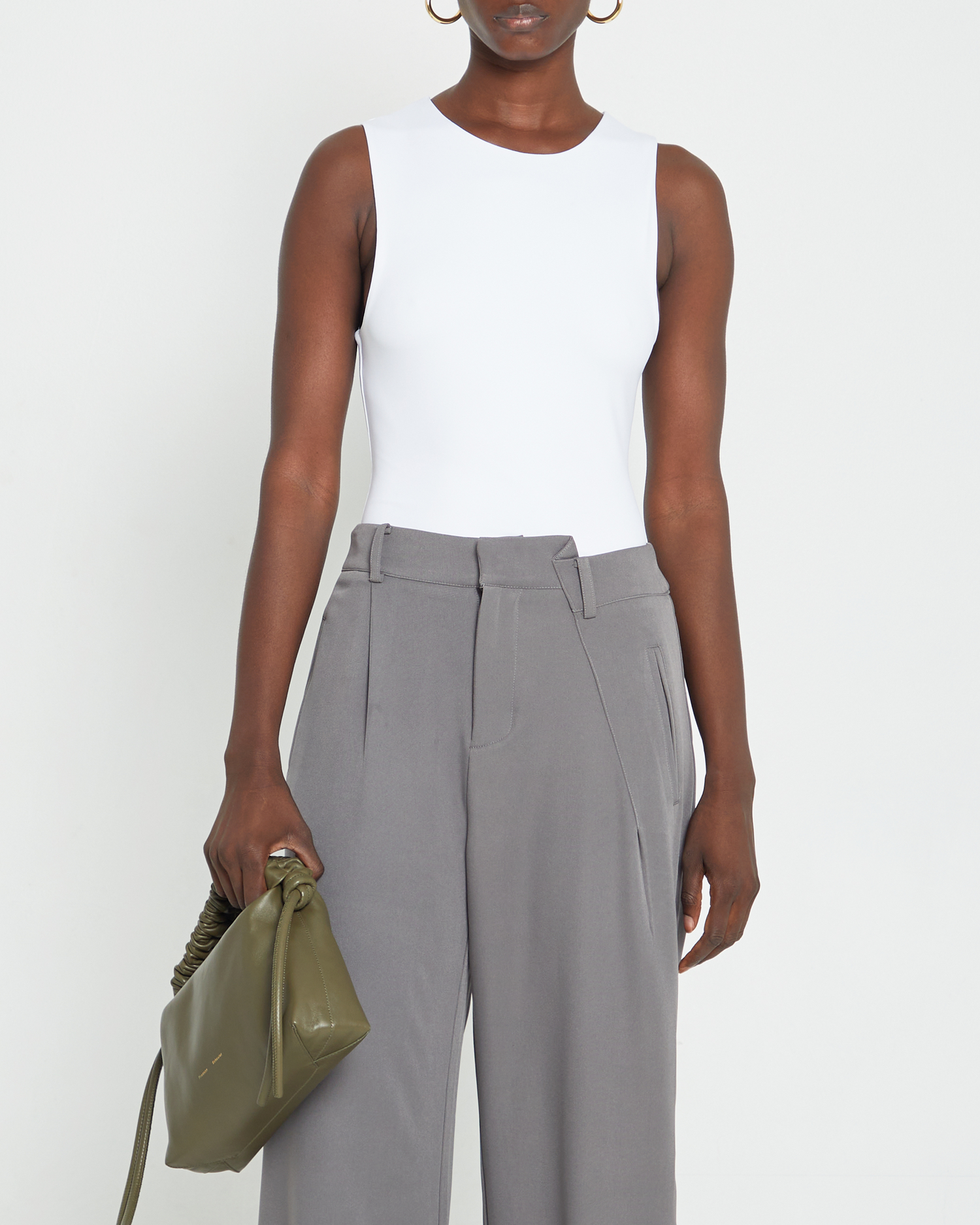 I love love love this top. The fabric is soft but strong, I feel held in and comfortable, no bra needed! I have already gotten so much wear out of it and looking to get the other colors.