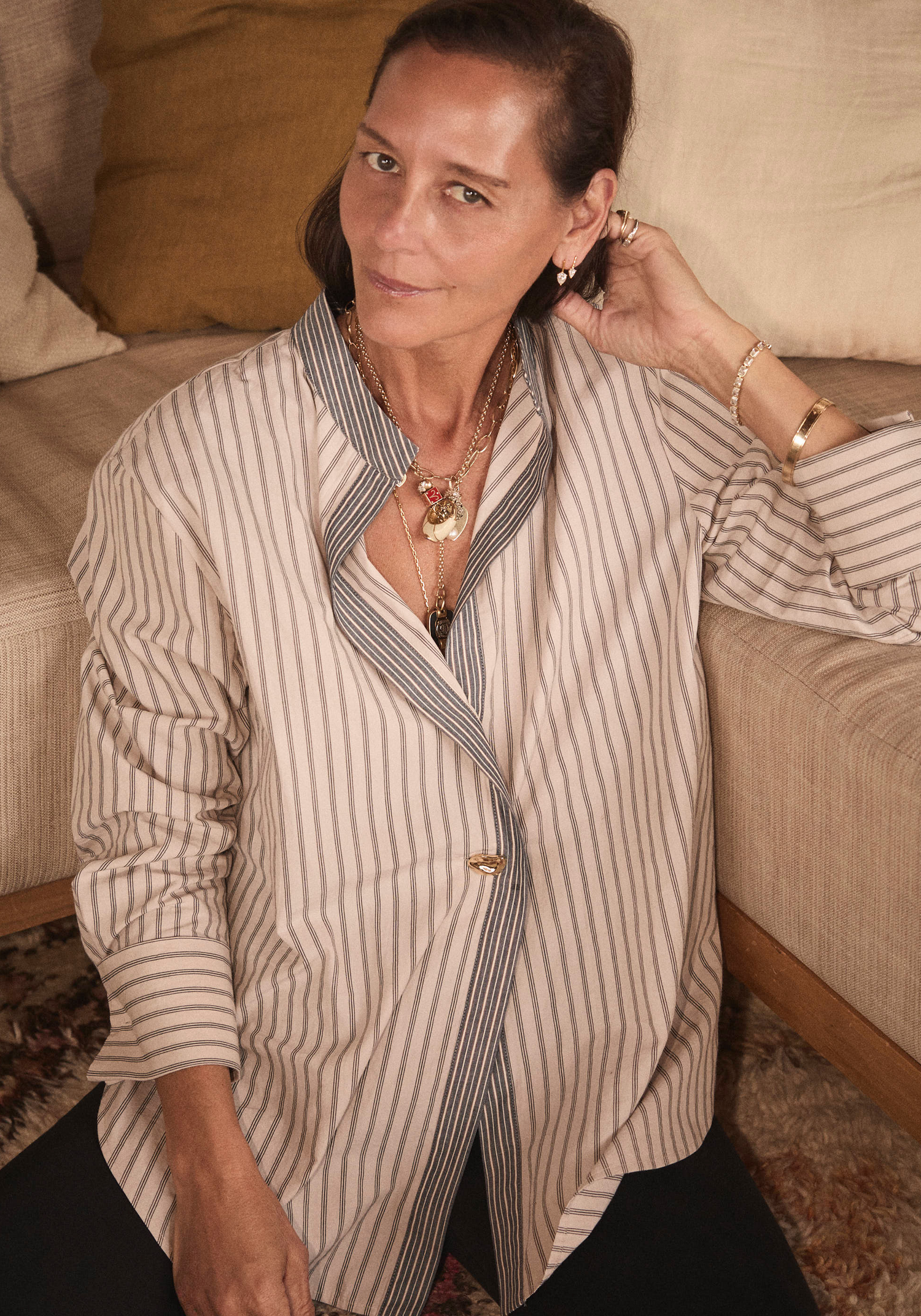 A modern take on a timeless classic, this striped button-down blends relaxed ease with tailored polish. Designed in a soft, breathable cotton feel, it features subtle vertical pinstripes, a contrasting collar and placket for added dimension, and a slightly oversized silhouette that drapes effortlessly. Finished with a single statement button and an easy, laid-back fit, it’s the kind of piece that transitions seamlessly from casual days to elevated evenings.