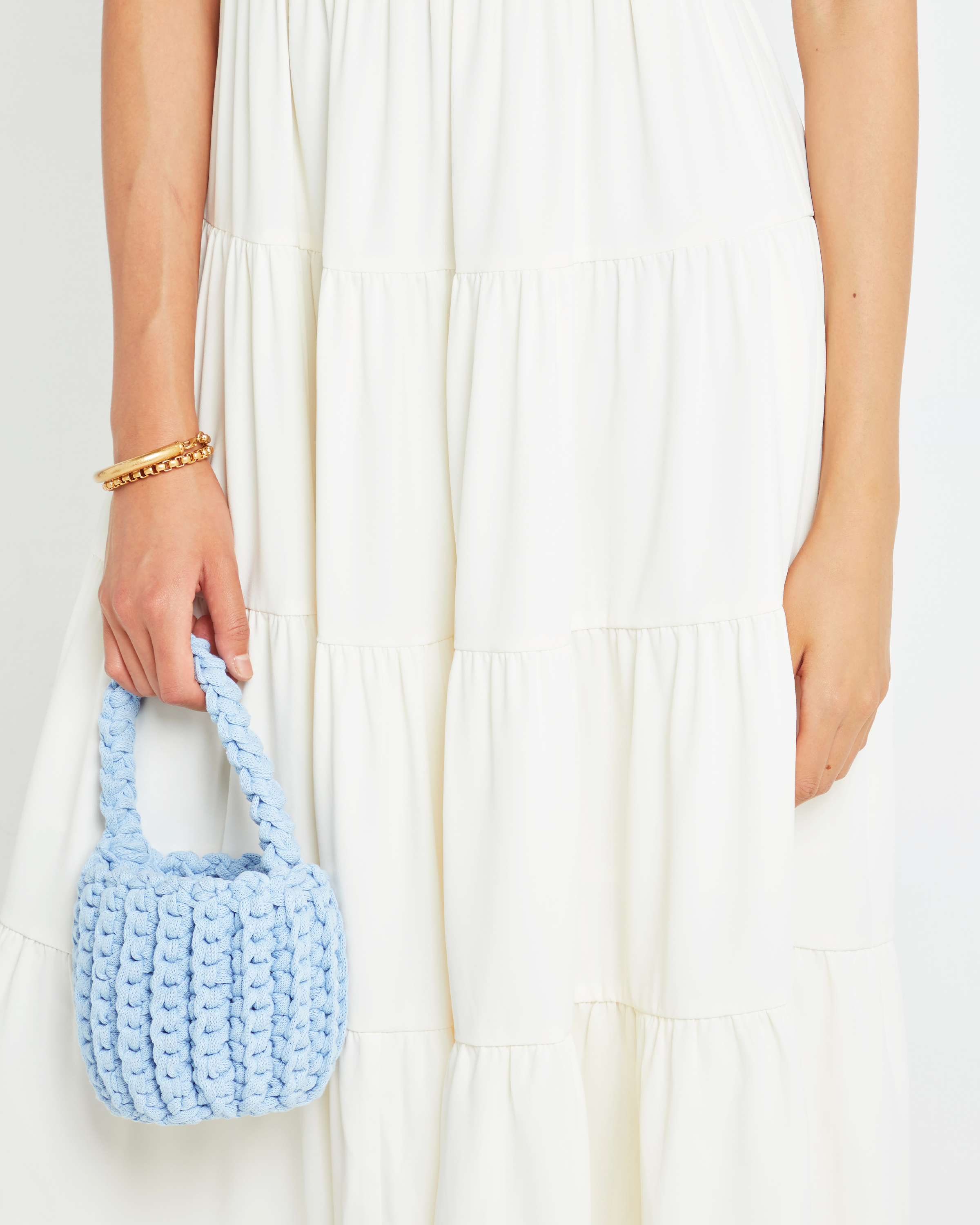 Done with a bustier style bodice and pretty, tiered skirt, this feminine style is simple and sweet. Finished with comfortable elastic straps.