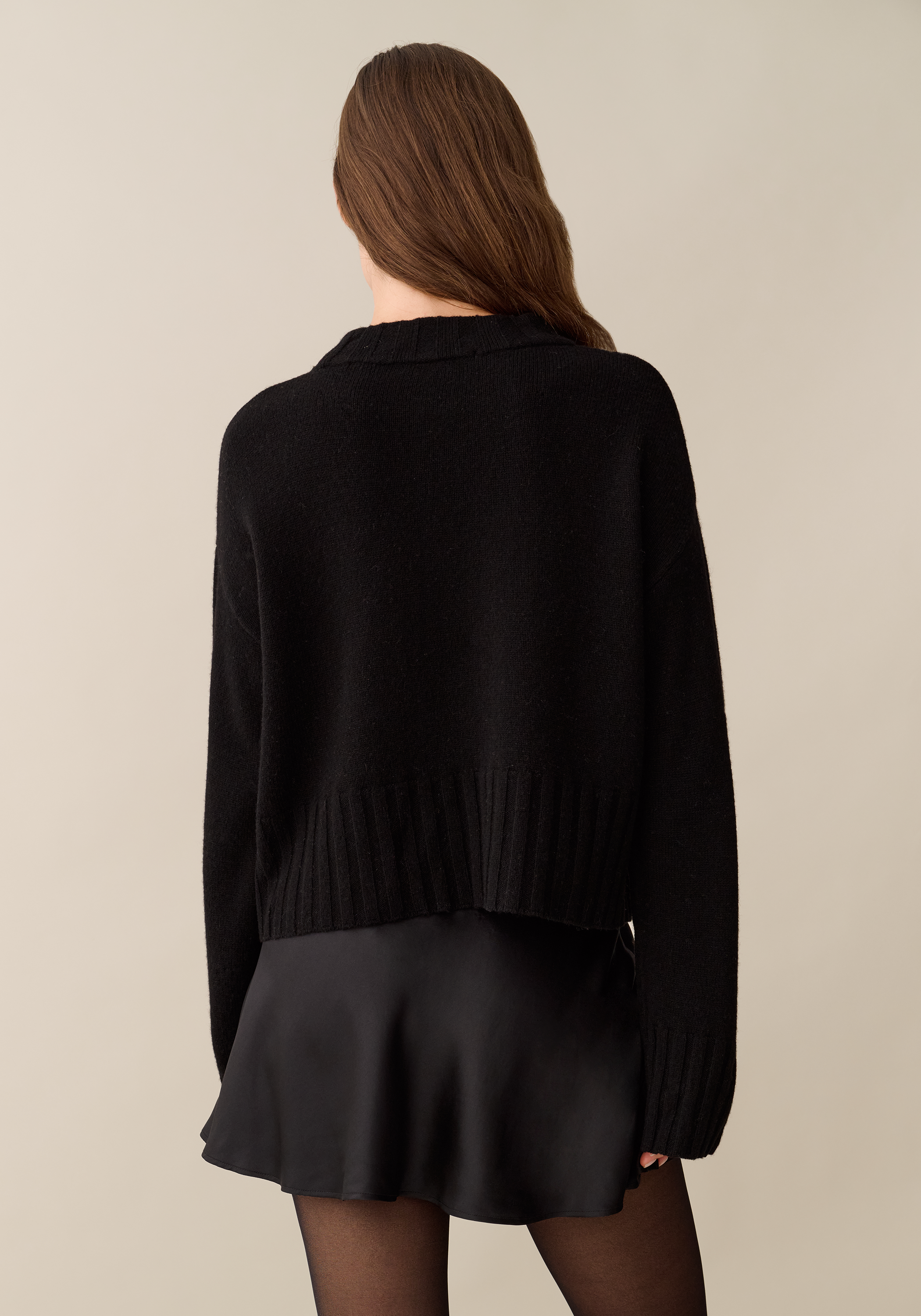 Crafted from high-quality wool, the Perla Sweater offers a relaxed fit for a comfortable and cozy feel. Its ribbed hem and sleeve details add a touch of style, while the cropped design and crewneck neckline make it perfect for layering.