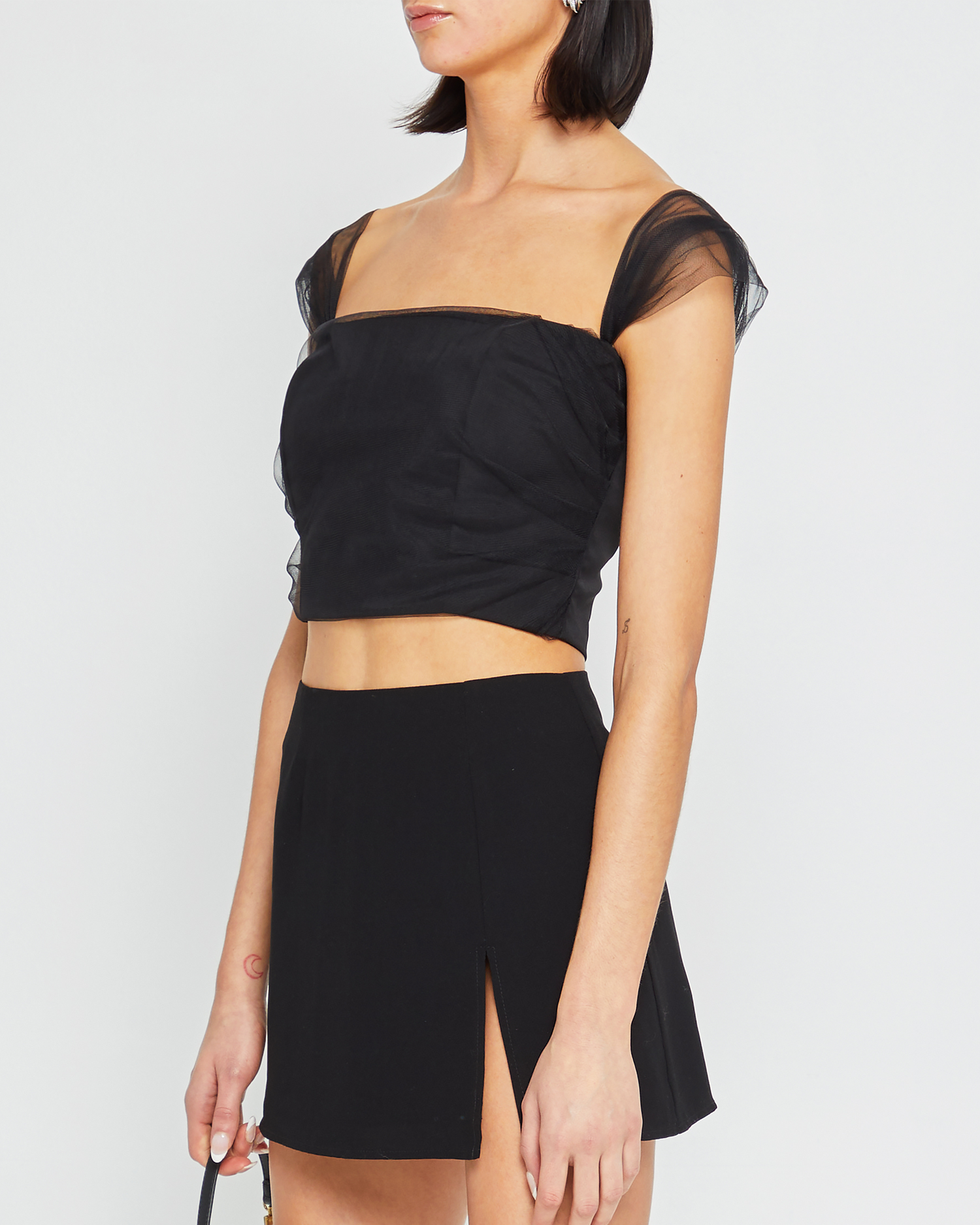 The Acosta Top is a timeless classic, featuring a cropped design and flattering ruched tulle. Its easy silhouette adds elegance to any wardrobe.