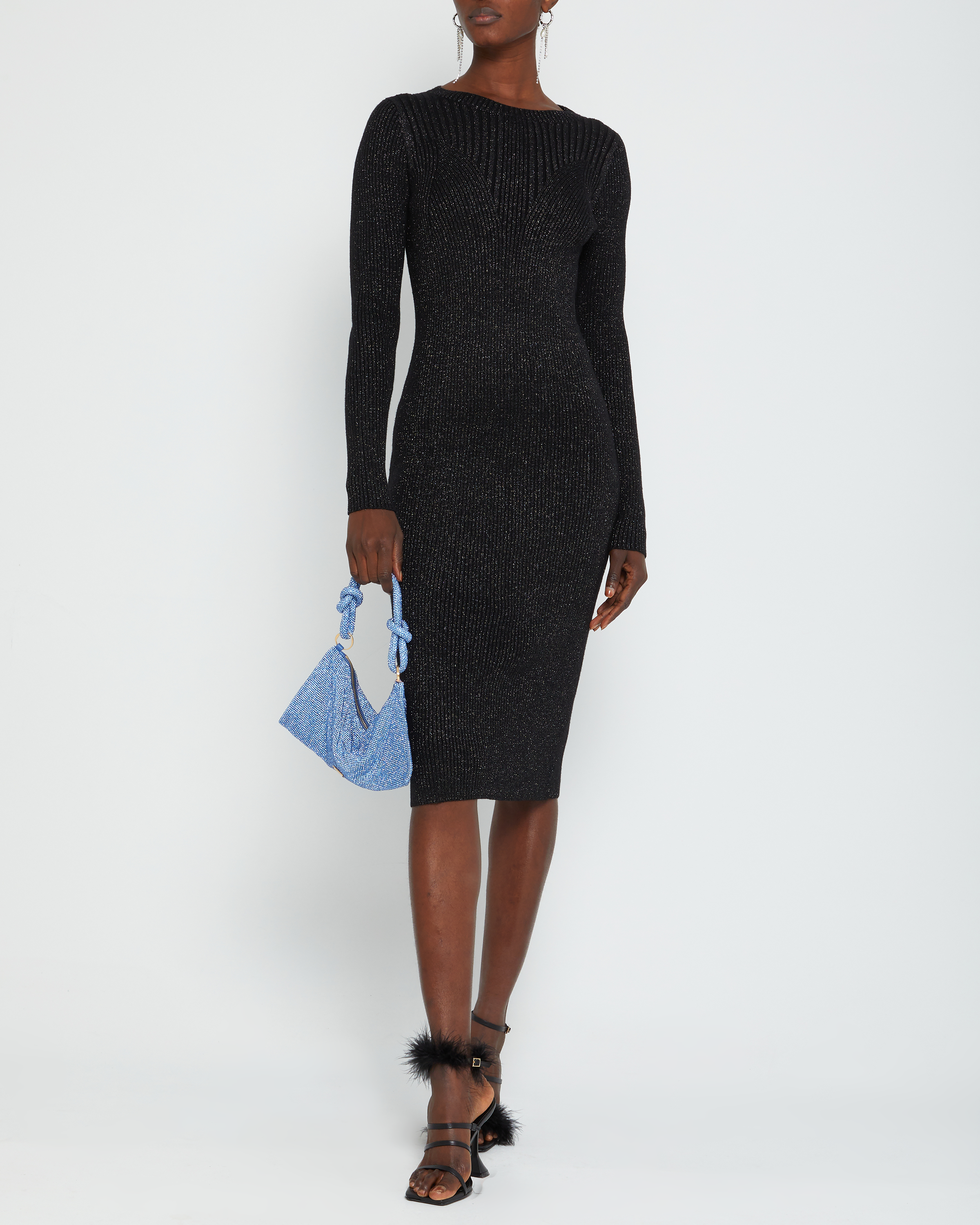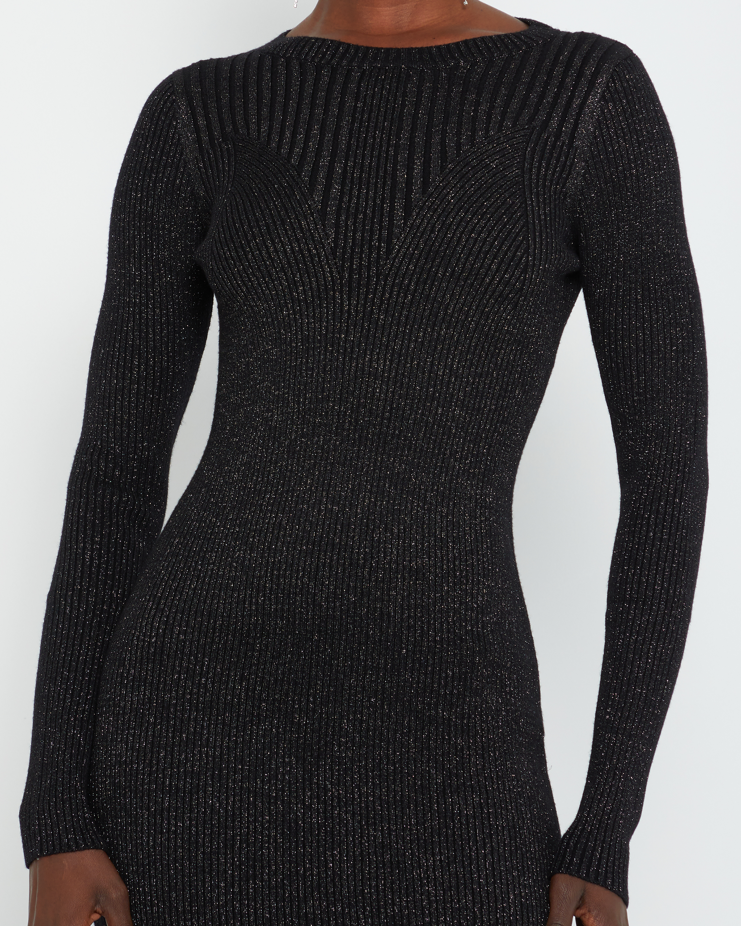Keep it cool and classy in this fitted, long-sleeve dress. Done with flattering ribbed knit patterns and a subtle sparkle.