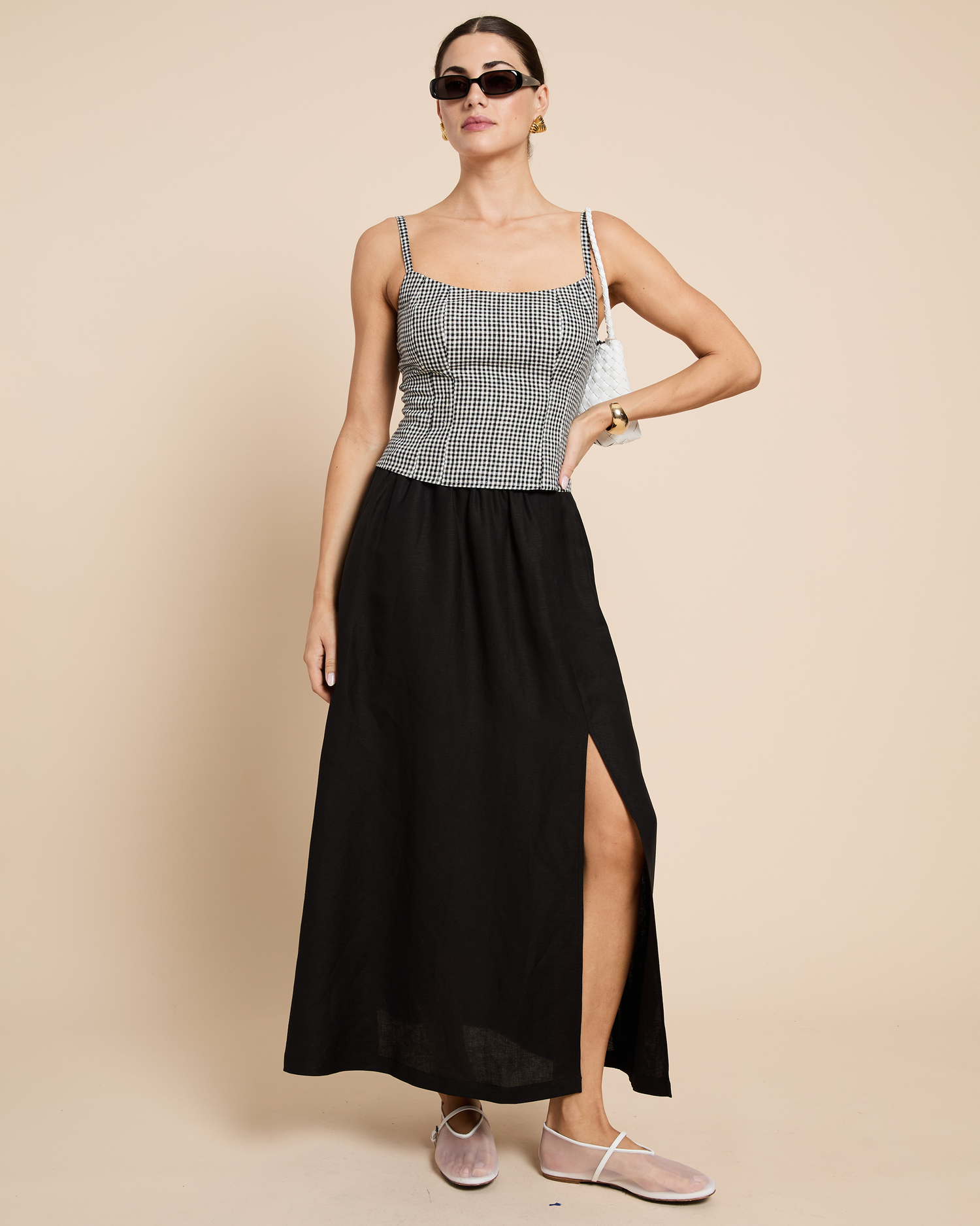 Introducing the Amal Skirt, the perfect versatile styling piece. Featuring an elastic waist for all-day comfort and a side slit for a little flair, add this must-have skirt to your wardrobe for endless outfit possibilities.
