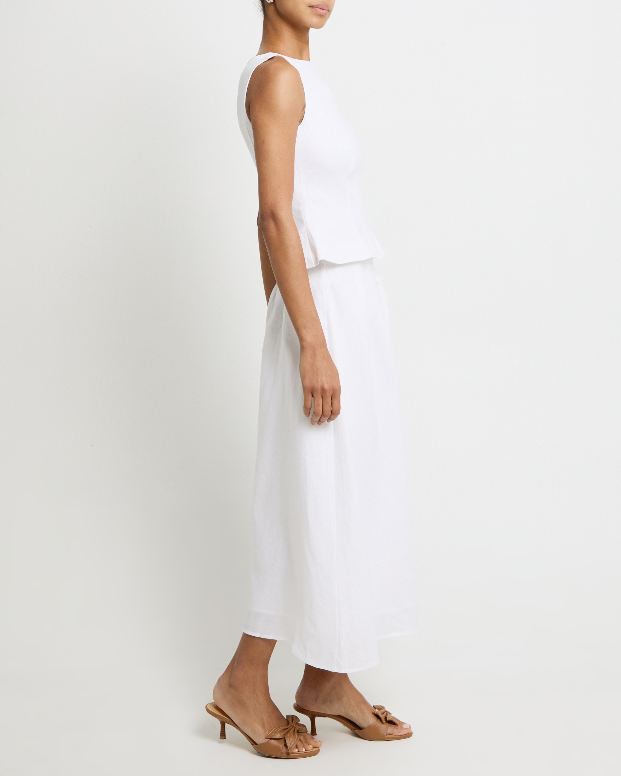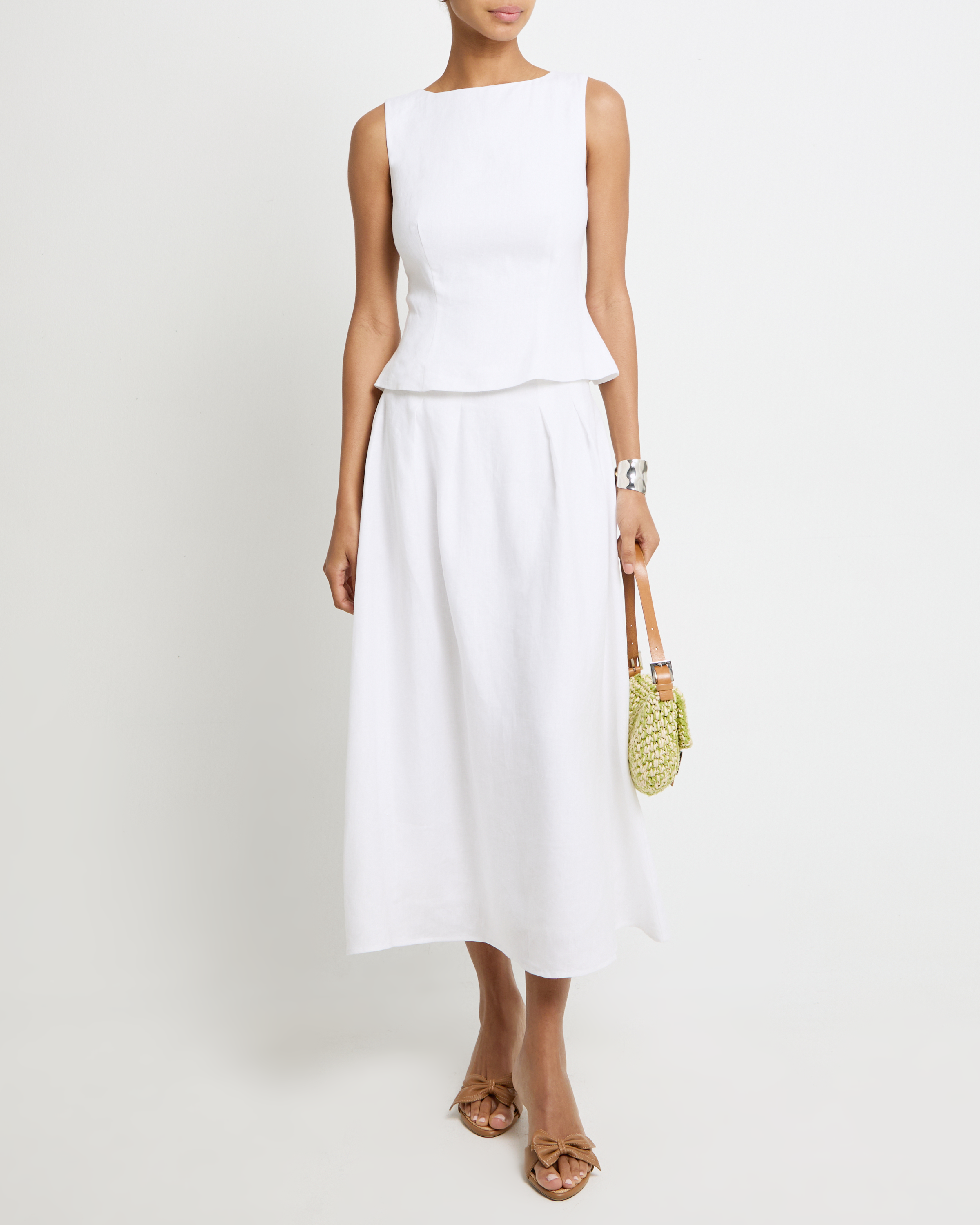 Crafted from crisp linen, the Aveline Linen Set exudes chic and sophisticated style. The peplum style top flatters any figure, while the maxi skirt with pleated details adds a touch of elegance. This gorgeous set is perfect for any occasion.