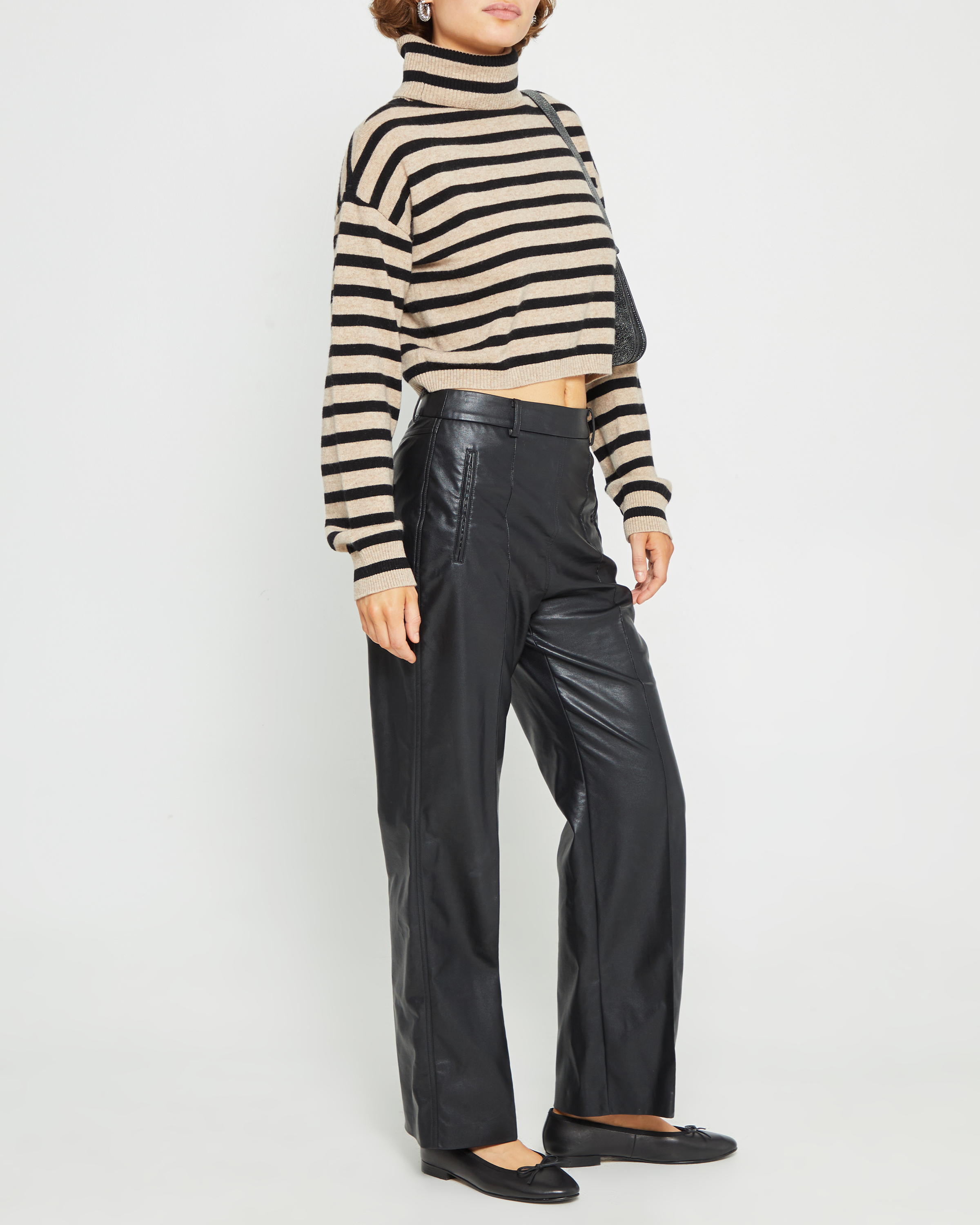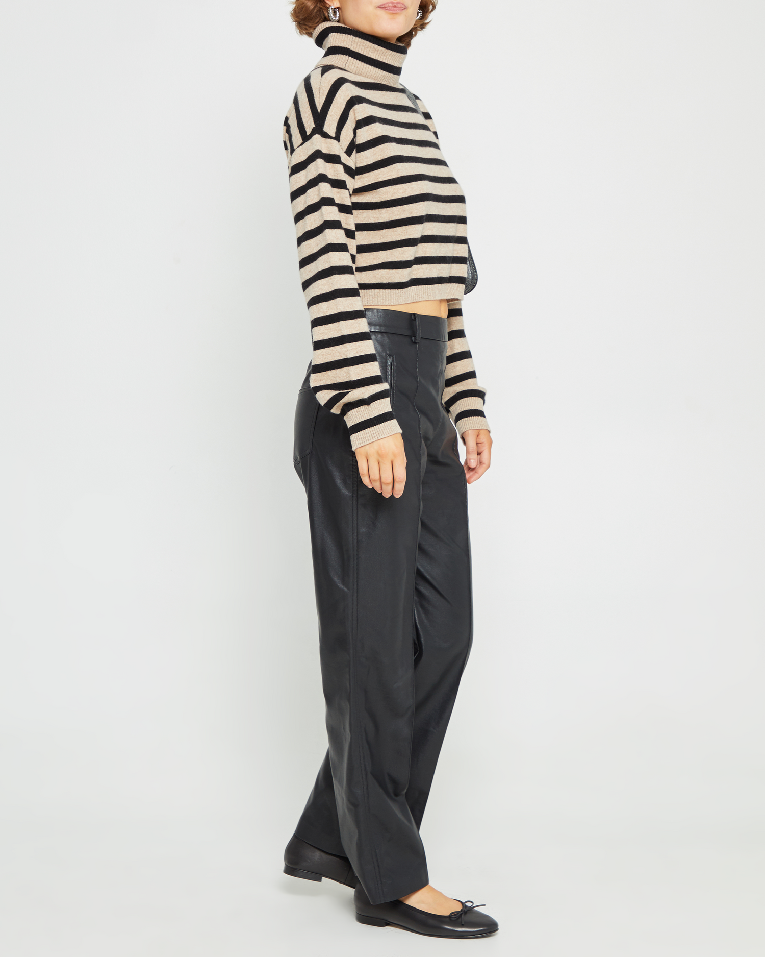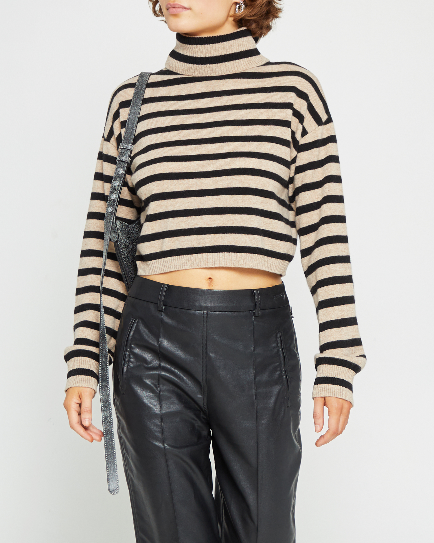 Introducing the Bentley Sweater, the perfect winter wardrobe piece. This classic cropped design with striped detailing looks effortless and timeless. Done in luxurious knit in neutral colors, this turtleneck sweater will complete any look.