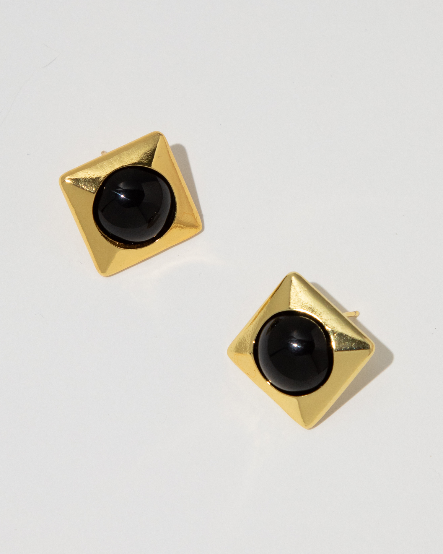 Add a touch of elegance to any outfit with our Chunky Onyx Square Earrings. The stunning contrast between the gorgeous gold and rich black onyx enamel creates a classic and on-trend look. Elevate your style with this versatile and timeless piece.