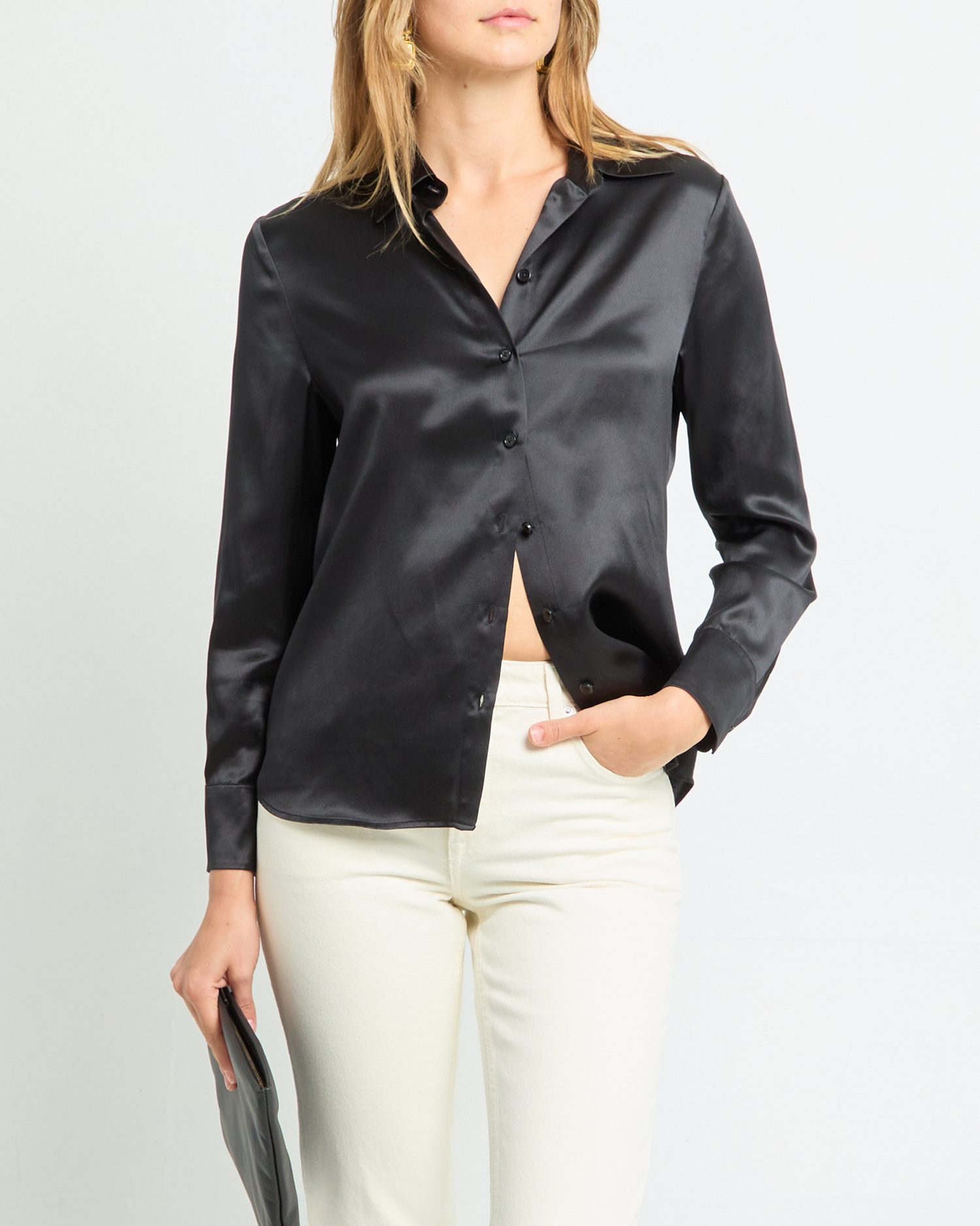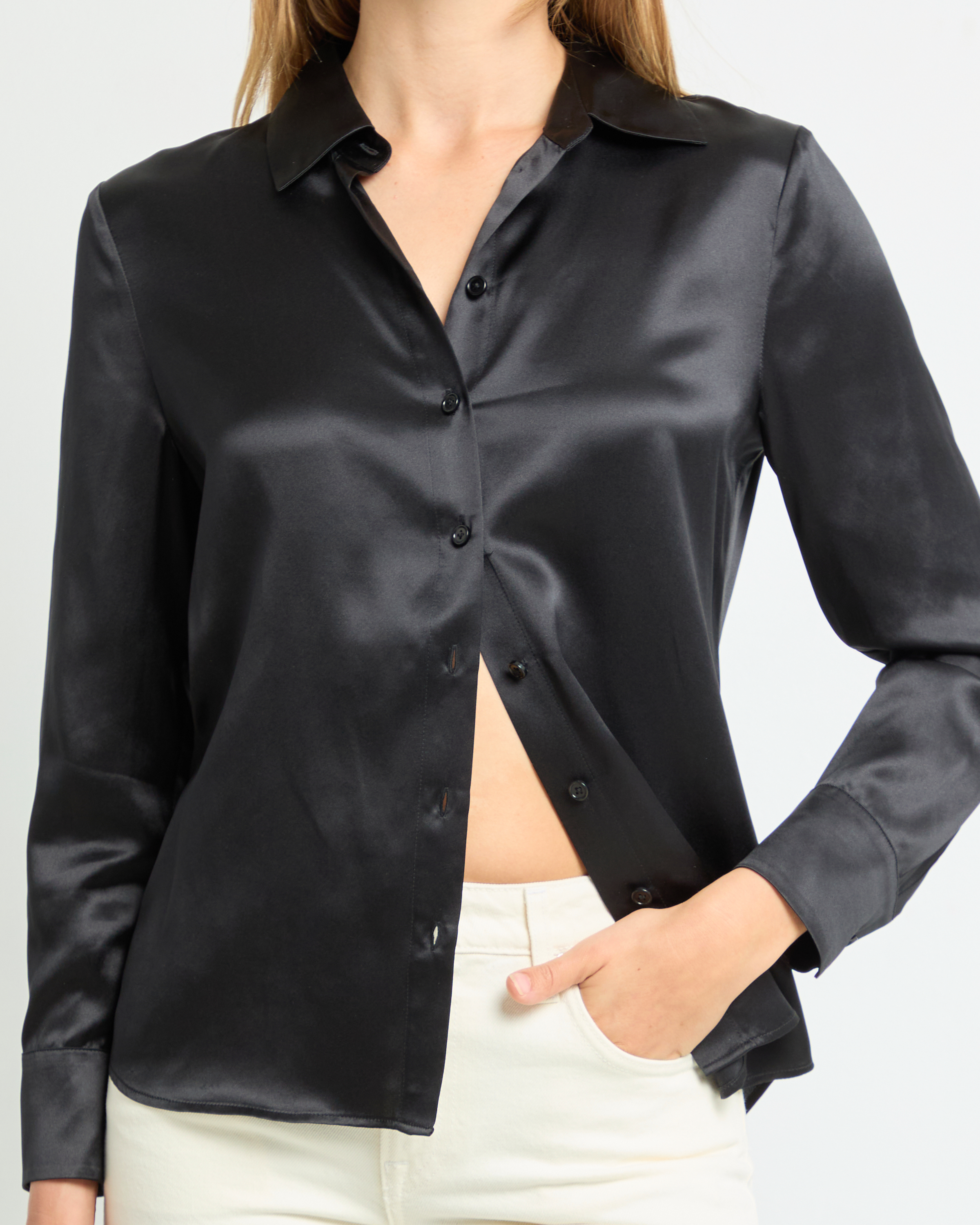 This classic collared shirt is elevated with 100% Mulberry silk for a sophisticated look and feel. Done with long sleeves and an easy button-up design, the Eliana Silk Top is a true elegant staple piece.
