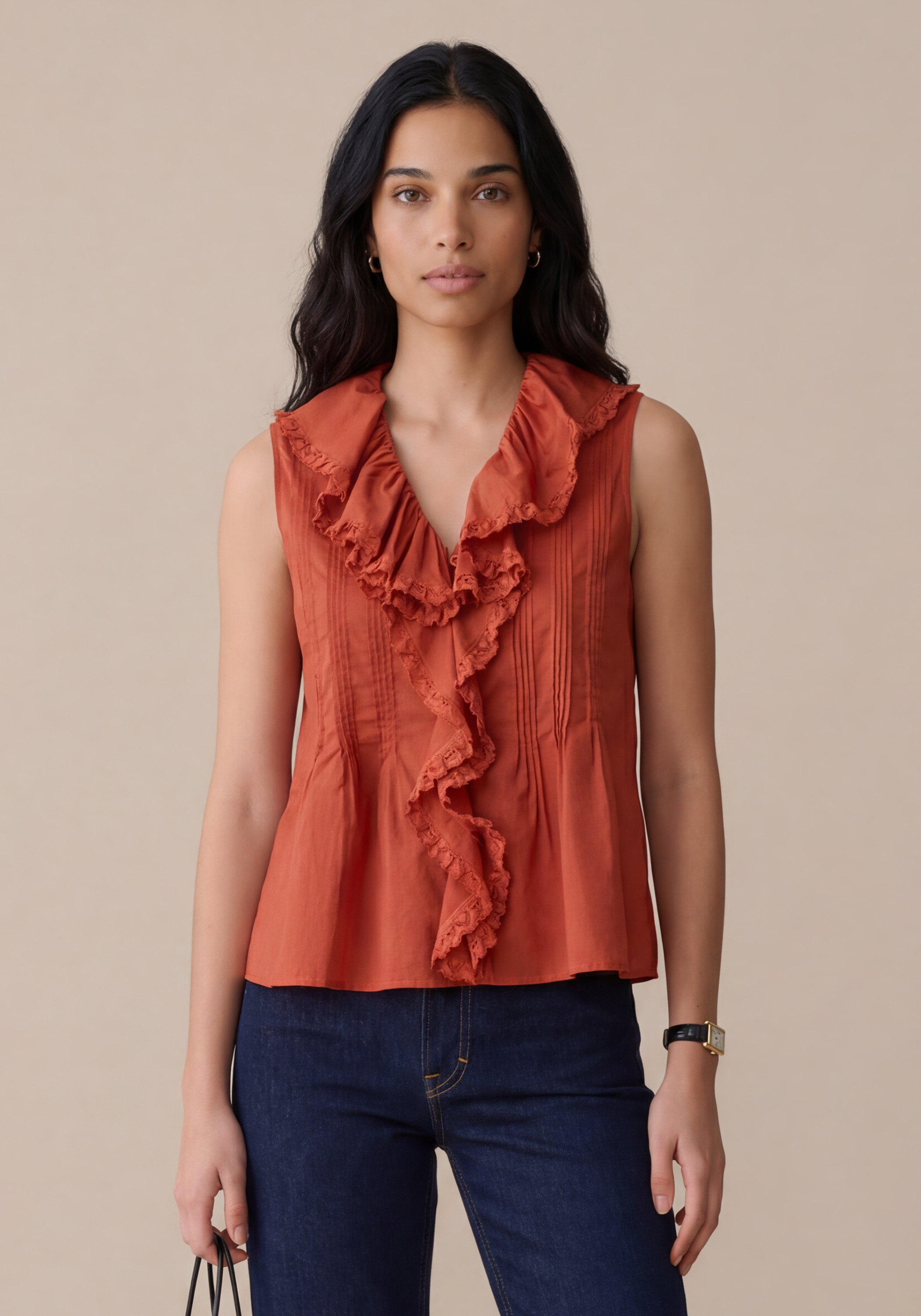 The Eve Cotton Top brings effortless style with its ruffled neckline and sweet pleated details. Crafted from fresh cotton, this relaxed fit blouse drapes beautifully with a flowy silhouette that moves with you.