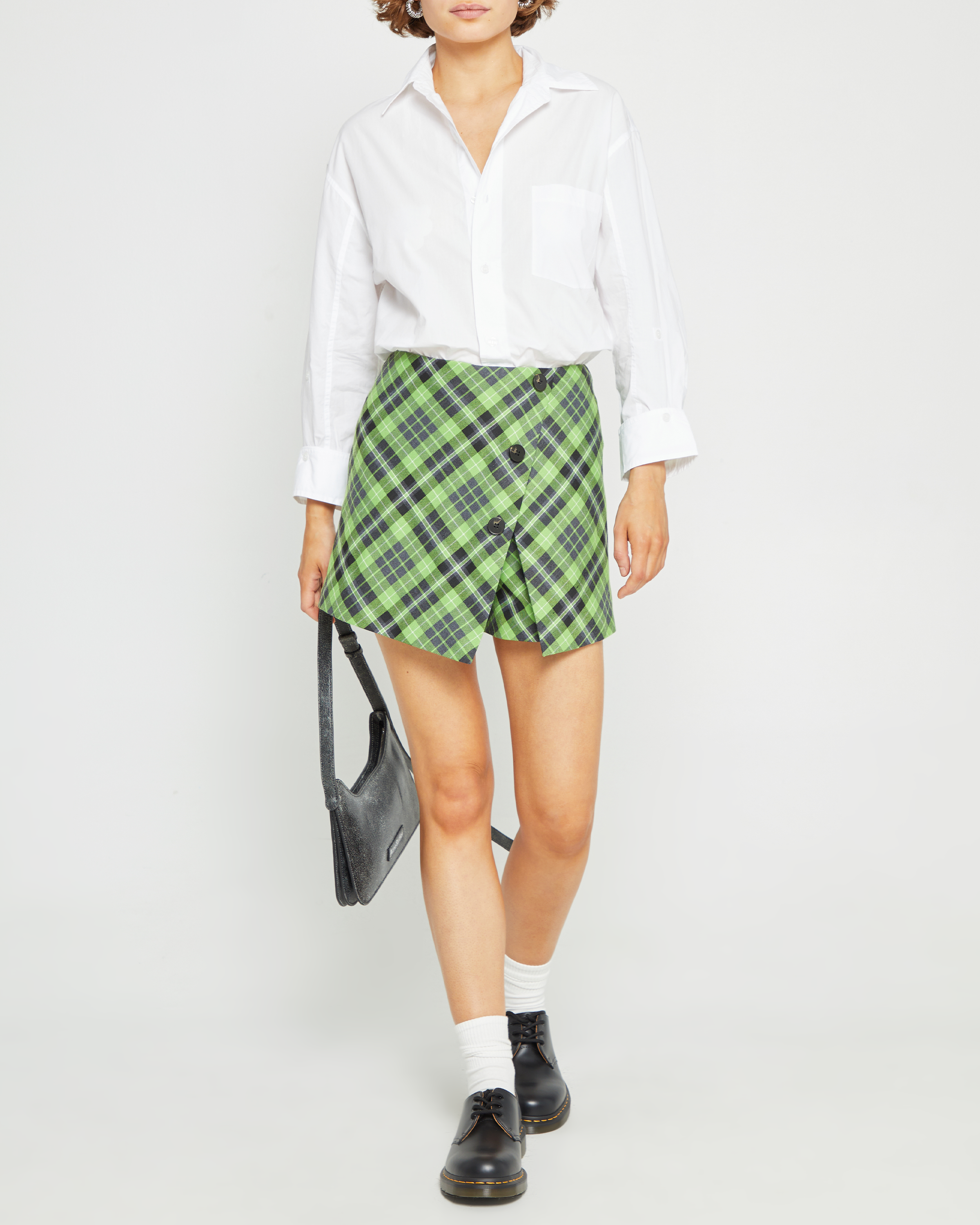 Stay cool and stylish in this Gia Mini Skort featuring a vibrant plaid design, slit detail, and an inner shorts layer for comfort. Effortlessly look your best with this must-have item.