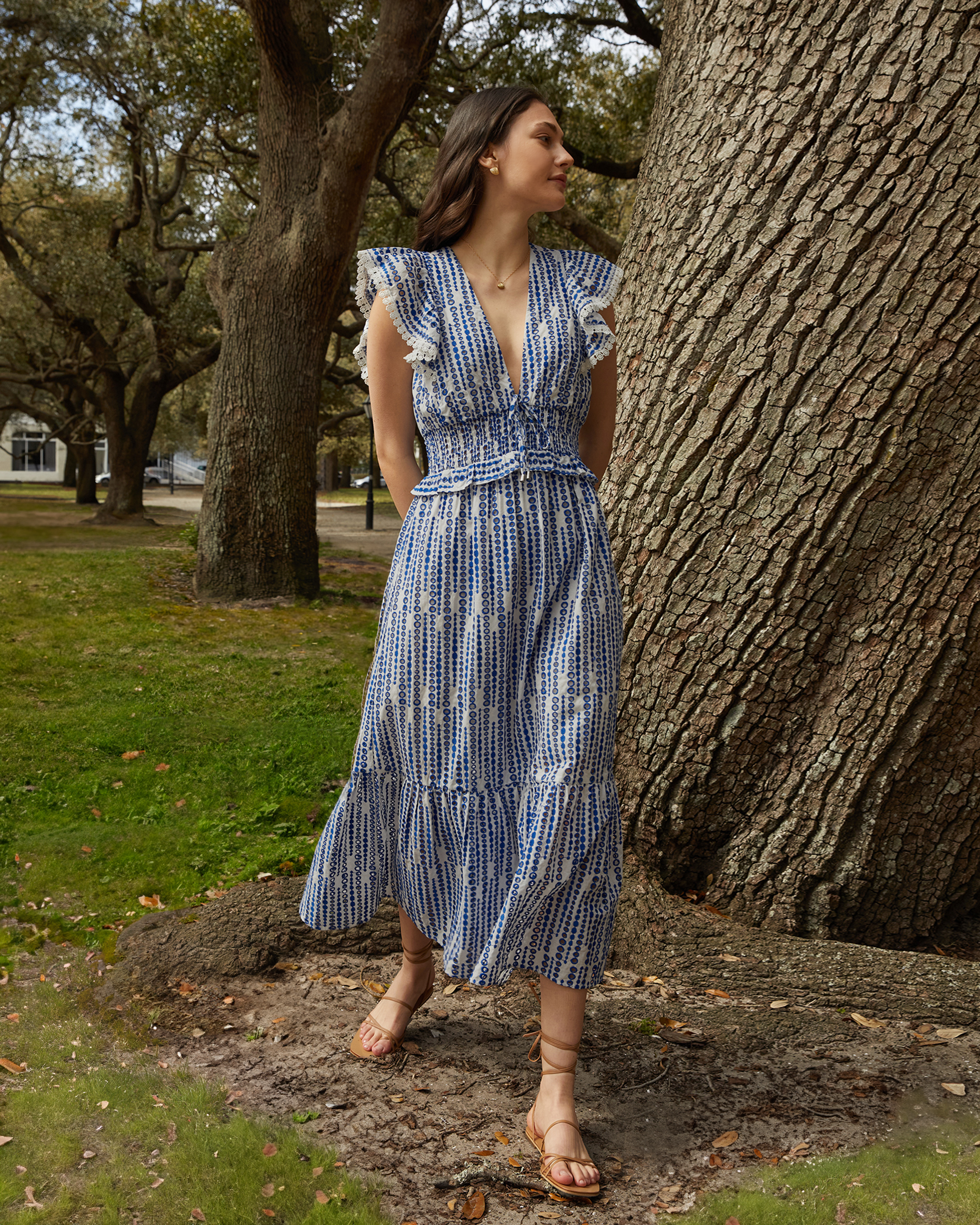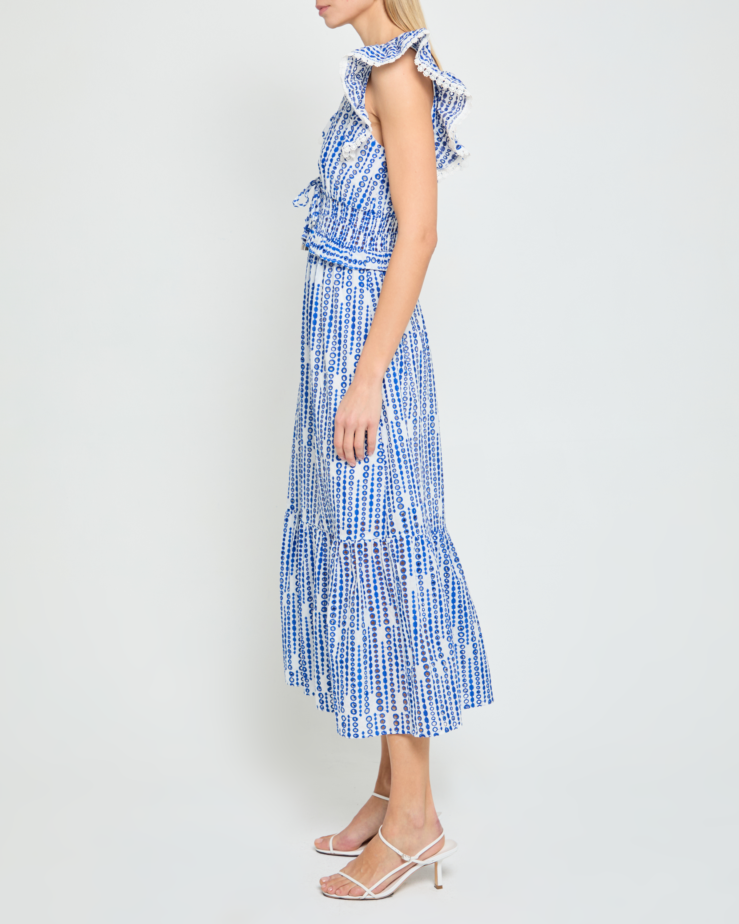 The Jardin Dress by is designed for everyday elegance. Featuring a classic silhouette with smocked waist and ruffle sleeves, this dress is crafted from fine eyelet lace. Make it a staple of your wardrobe for lasting comfort and style.