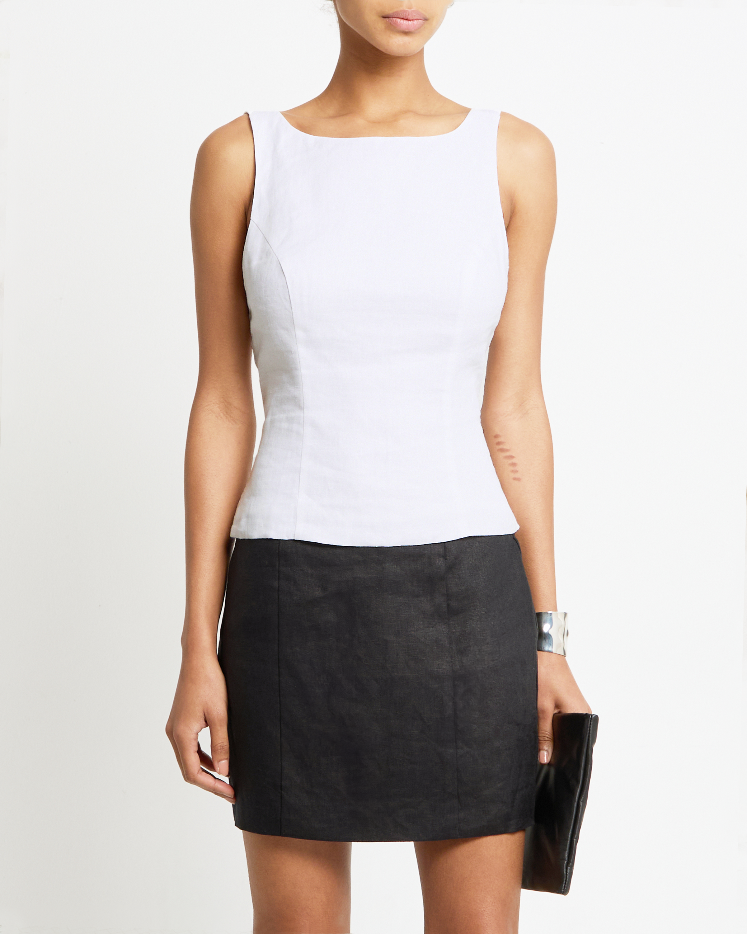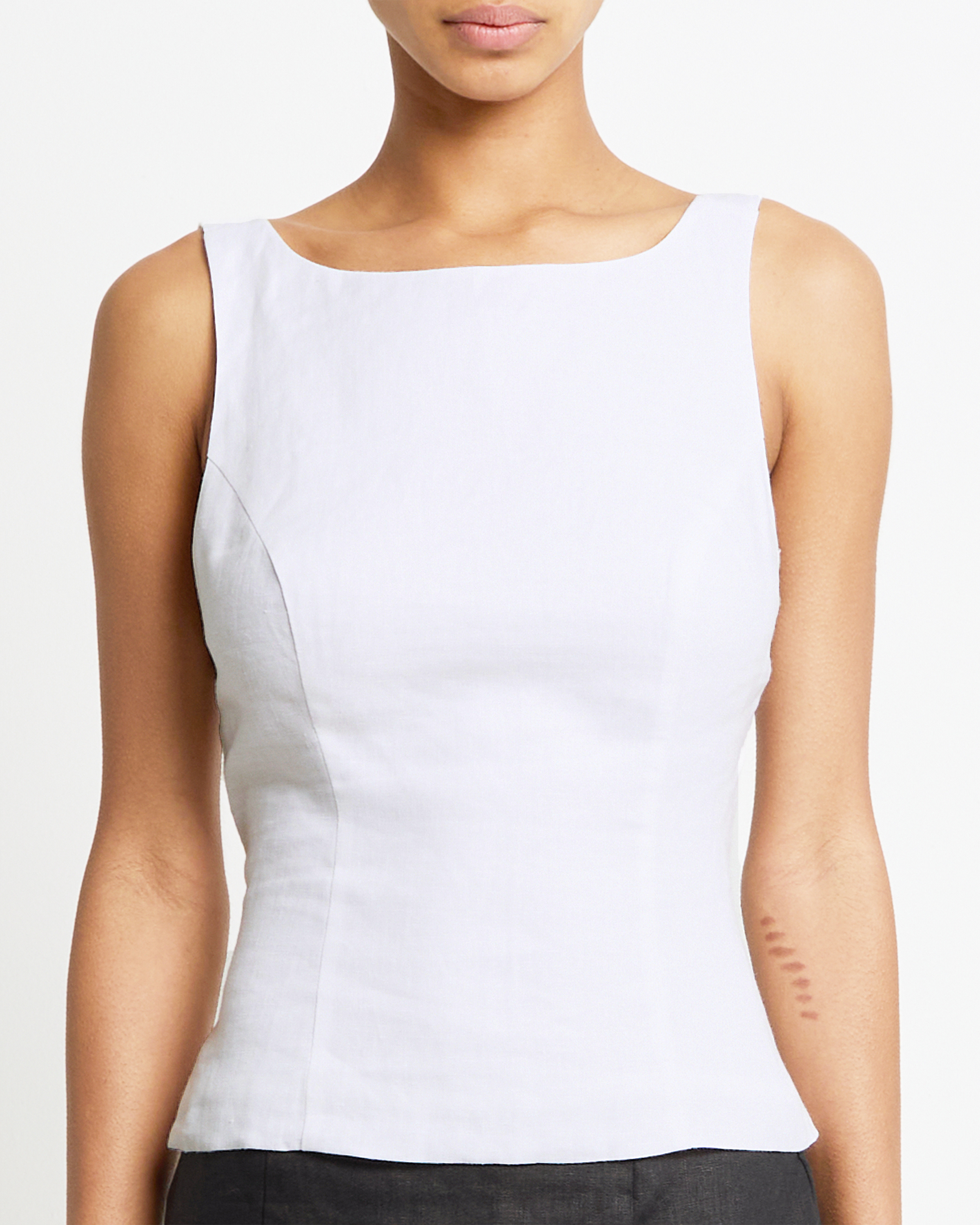 I love this top! The structure of the tank top is very well done, and the low back makes it unique. Since this is 100% linen, the material is not stretchy. I could have gone a size up but I love it!