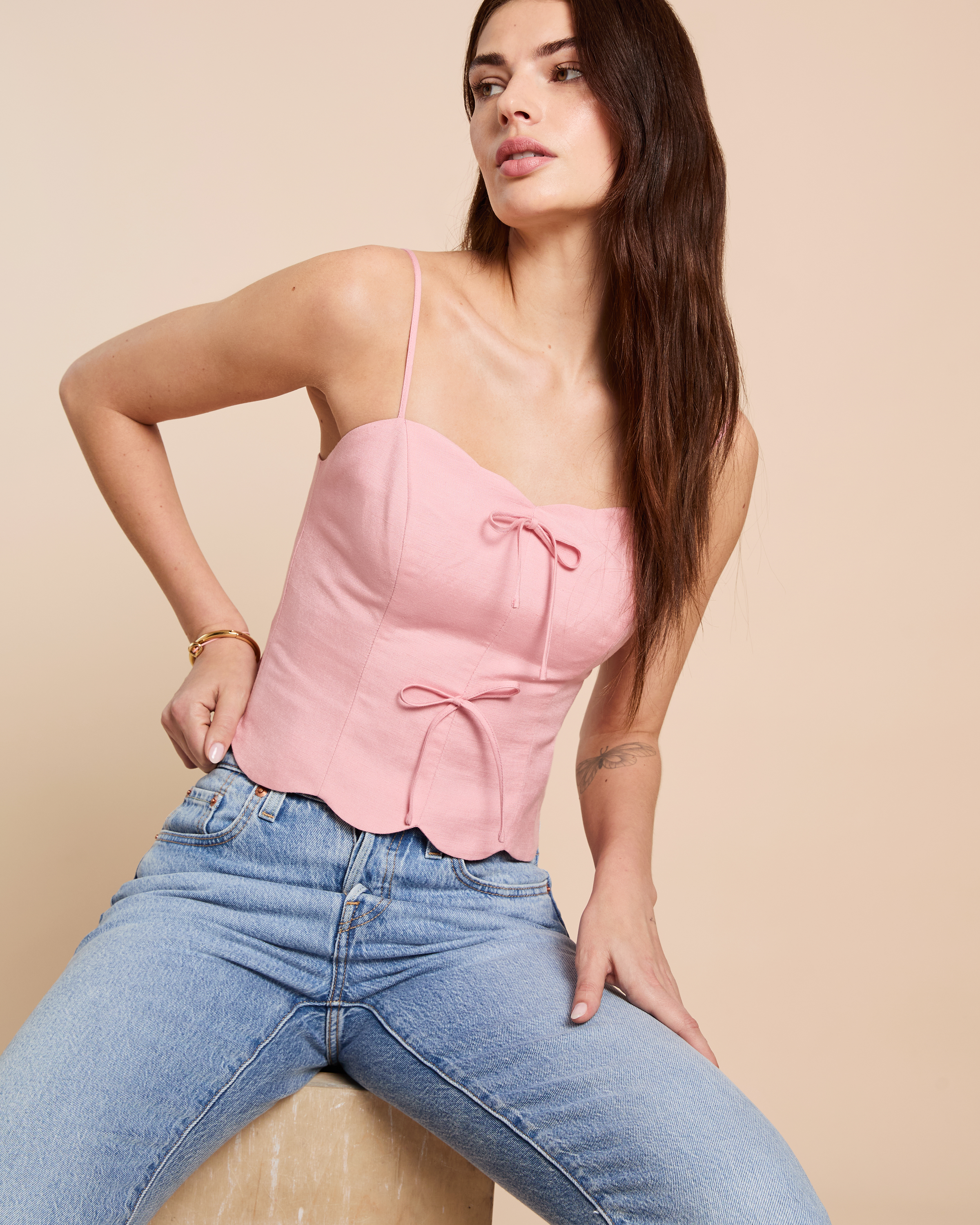 Look pretty in pink with the Lula Top. Done with so many charming details like the playful scalloped hem and delicate bows, this adorable fitted top offers a casual, fun style that effortlessly brightens your everyday outfits.