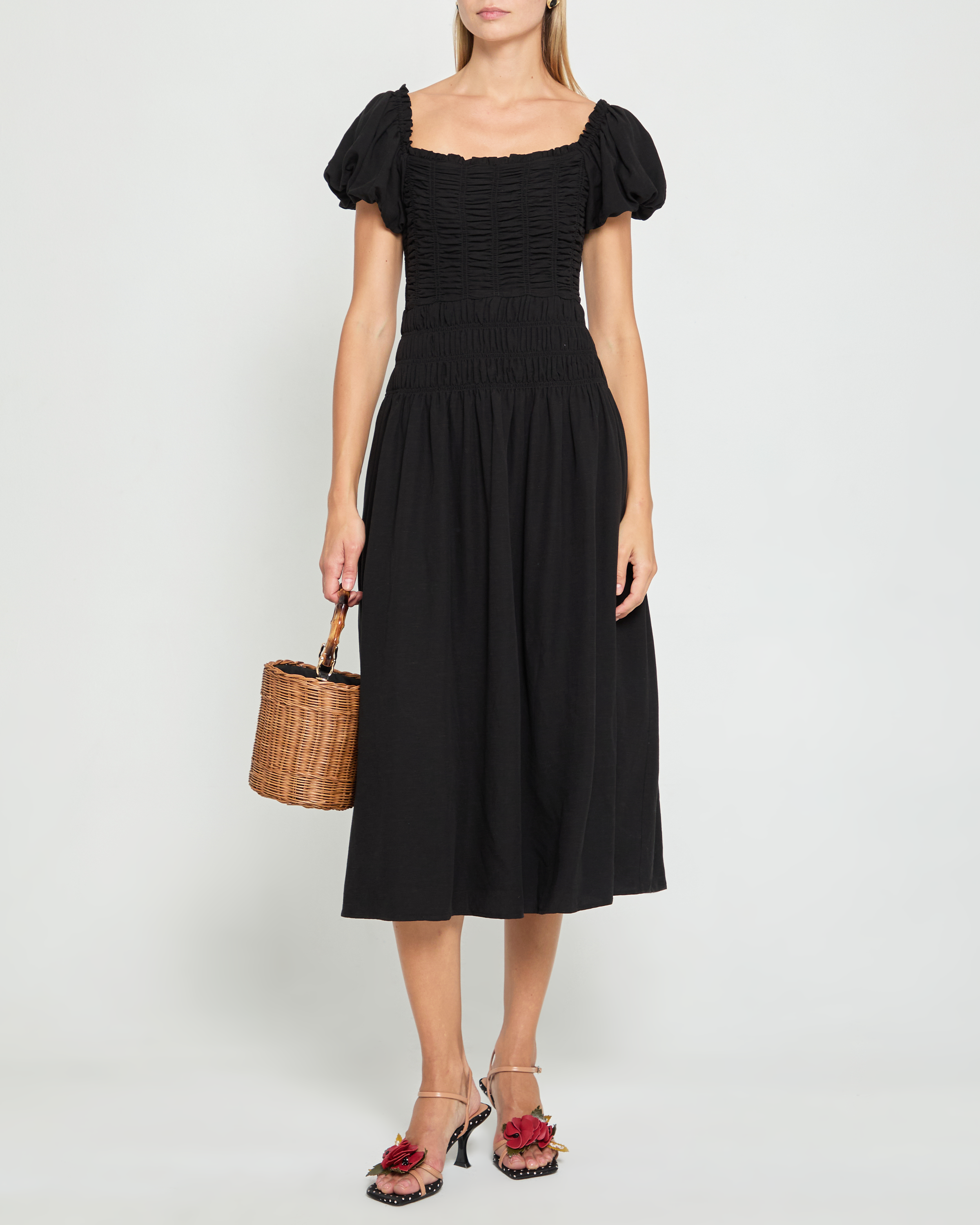 The Malta Dress boasts a delicate design with sweet smocking and romantic puff sleeves. Made from super soft and comfy material, it offers both elegance and comfort for any occasion. Perfect for those seeking casual sophistication.