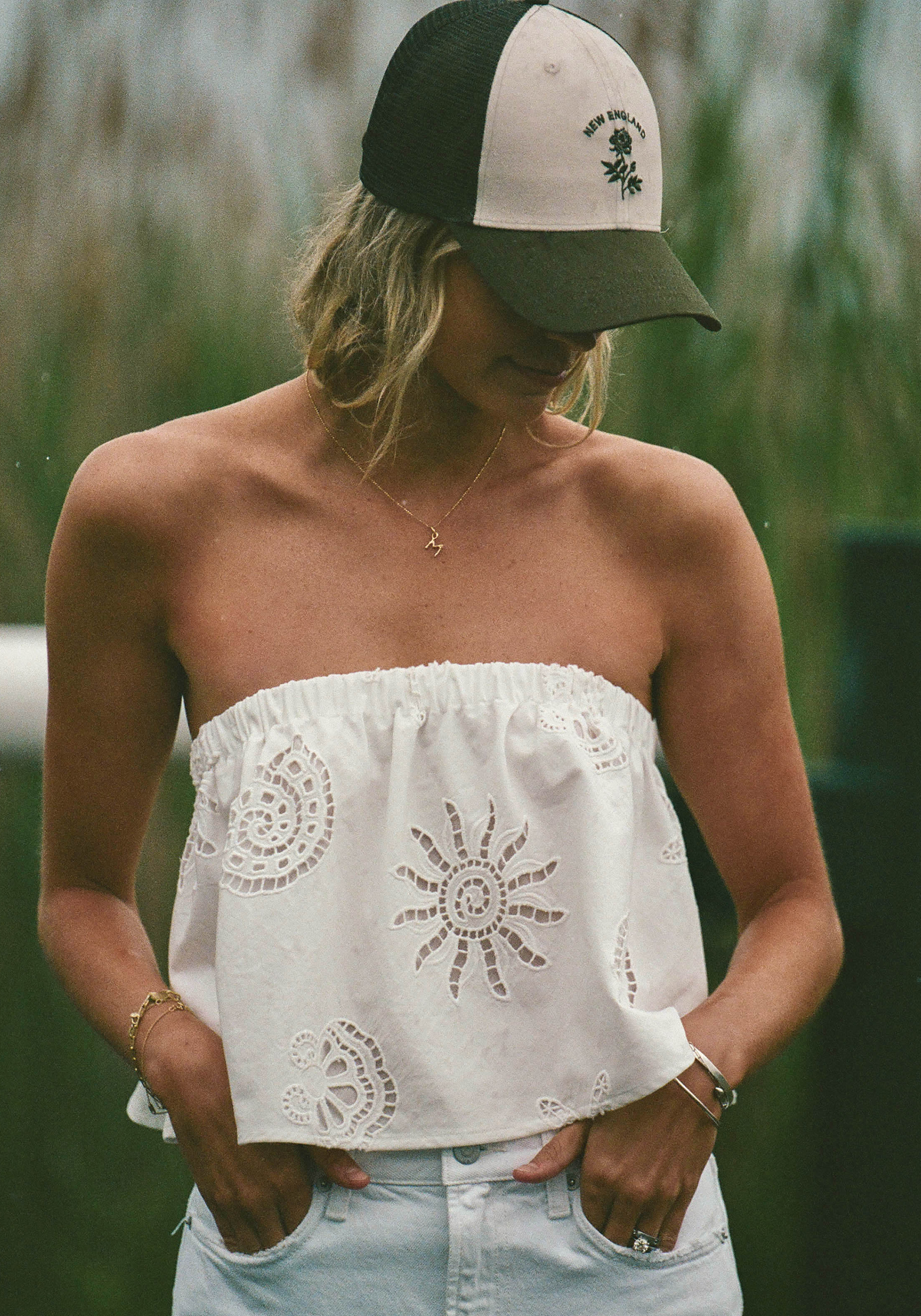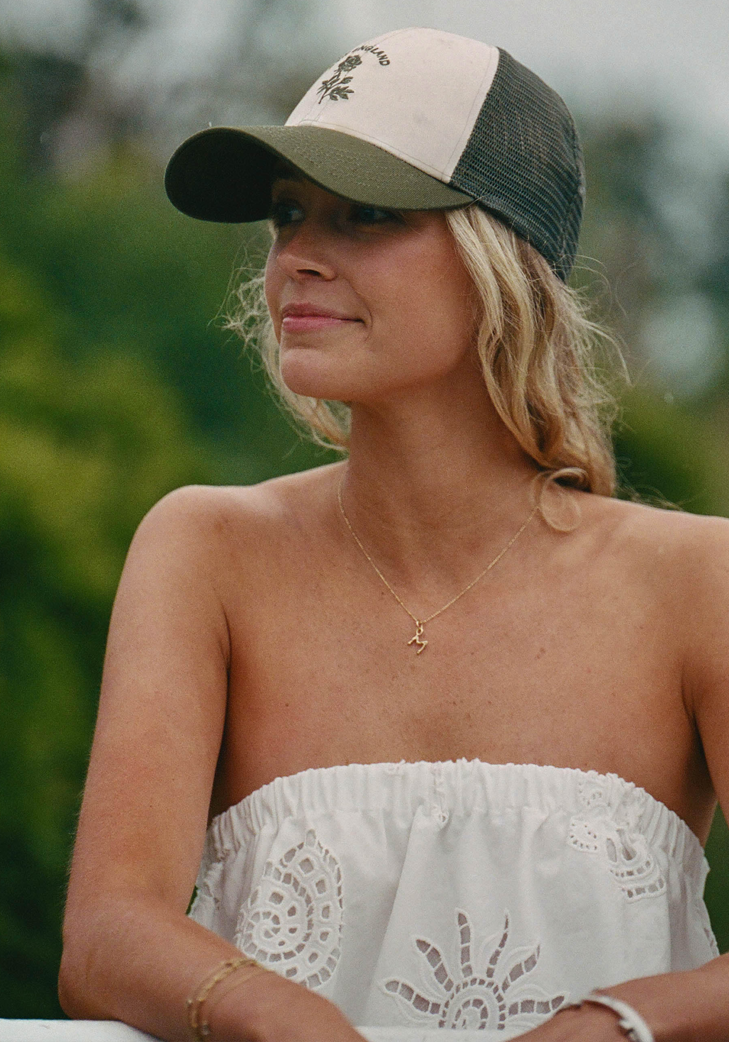 Fashion meets function with the New England Trucker Hat. Done with an embroidered rose and easy olive green color, this hat adds the perfect casual, cool touch to any outfit instantly.