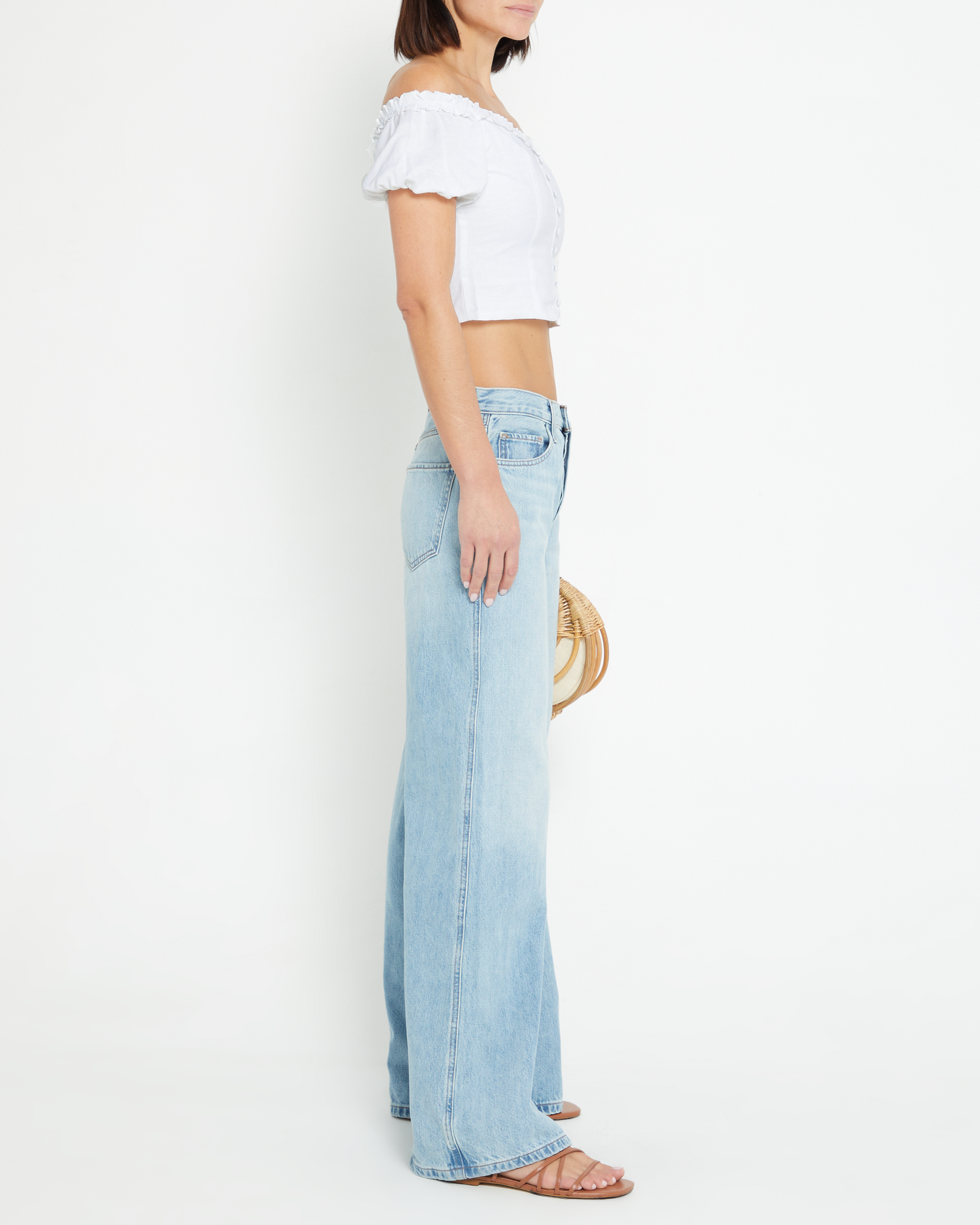 This sweet peasant top is crafted from a fresh linen blend with a cropped and off-the-shoulder silhouette for an easy and on-trend look.