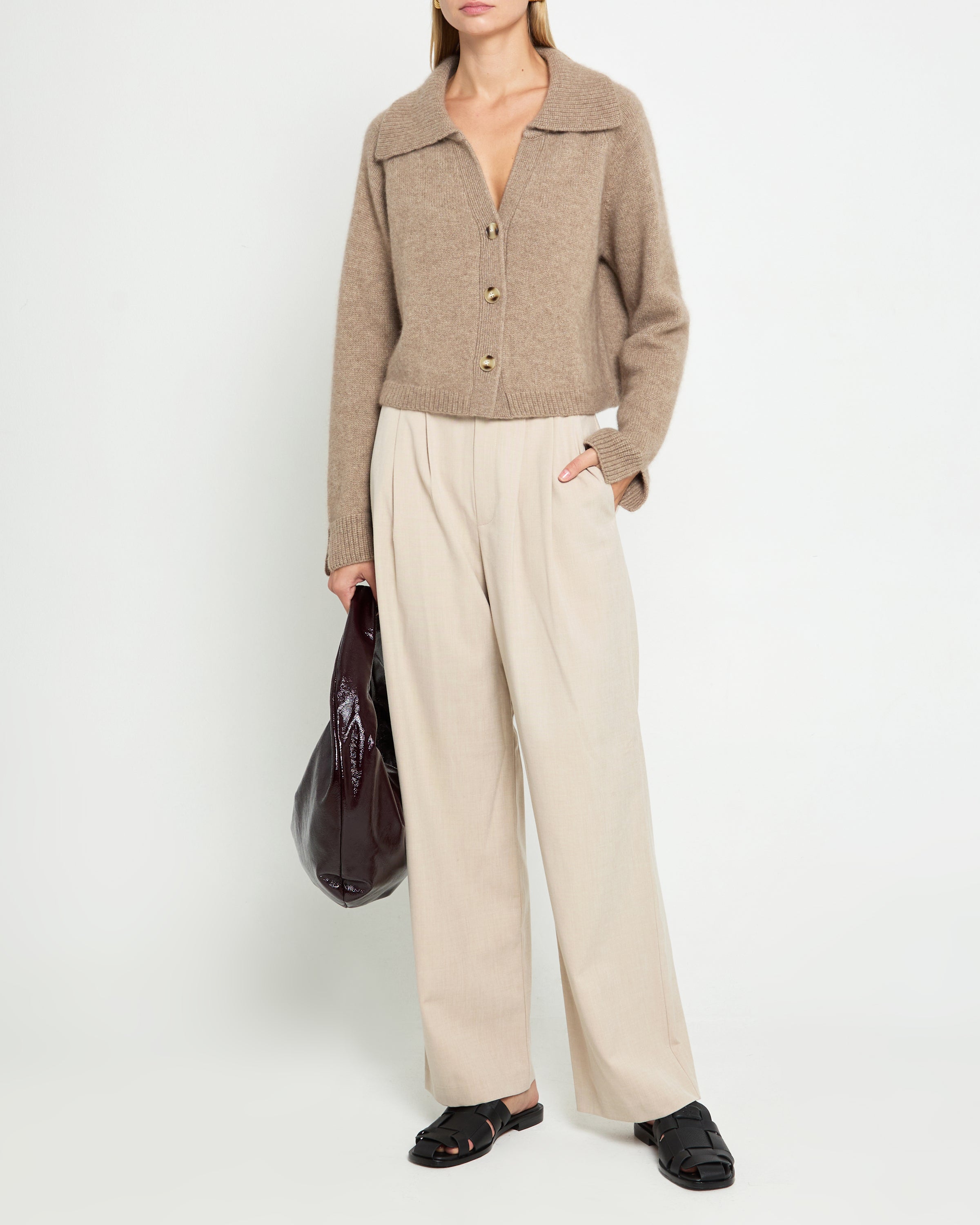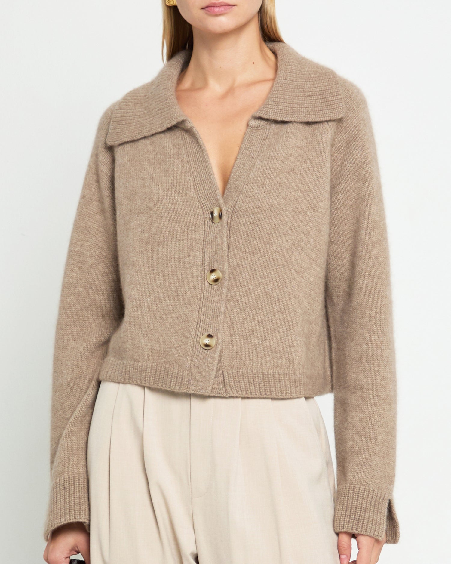 The Regina Wool-Cashmere Sweater boasts a stylish collar detail and a comfortable, yet cool cropped silhouette. With its front buttons and versatile design, this sweater is perfect for any occasion. Made with a blend of wool and cashmere, it is both luxurious and functional.