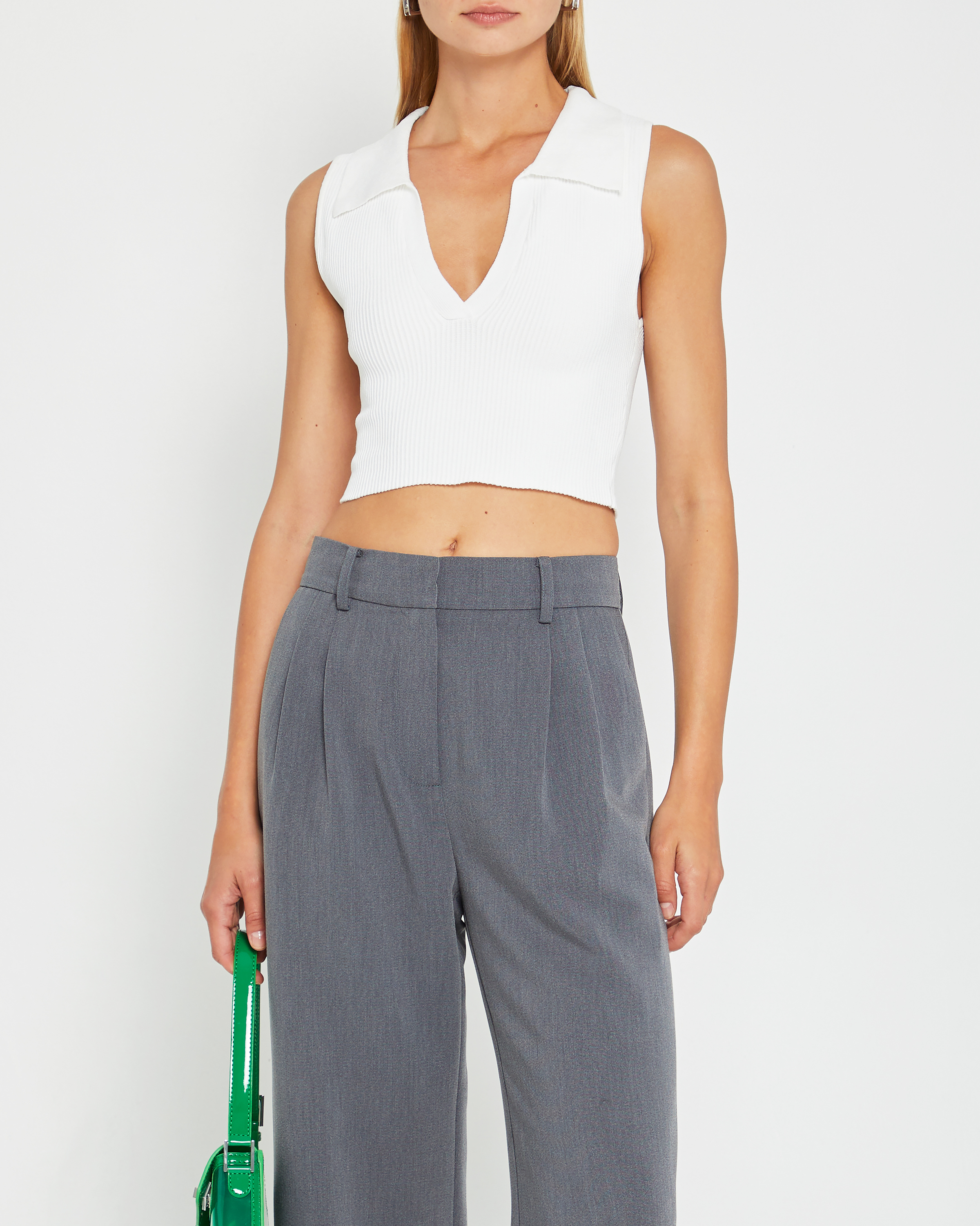 Sculpting Knit Cropped Polo Top