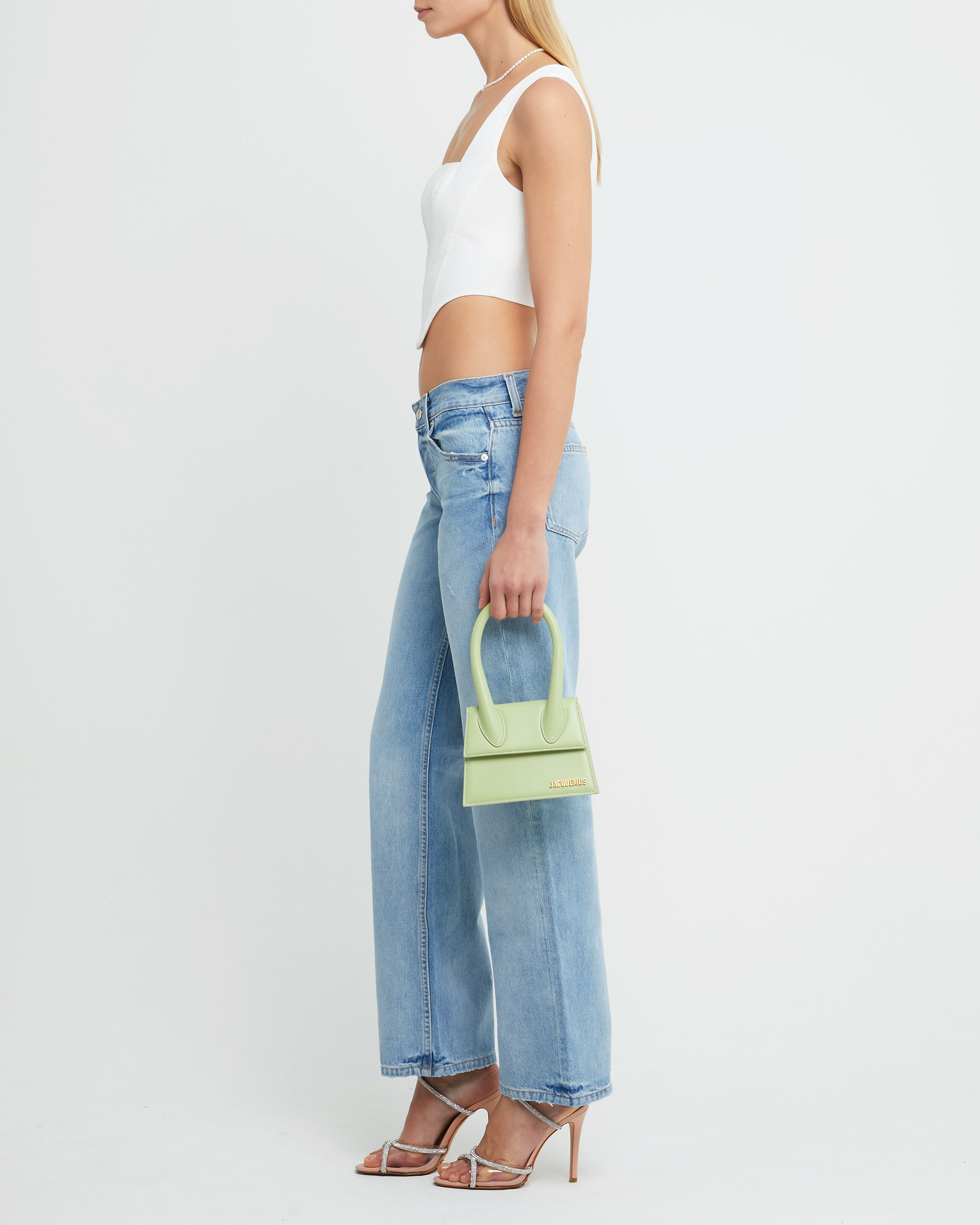 This classic corset top is the perfect piece for looking put together. Done in a thick, white denim with a square neckline and ribbing detail.