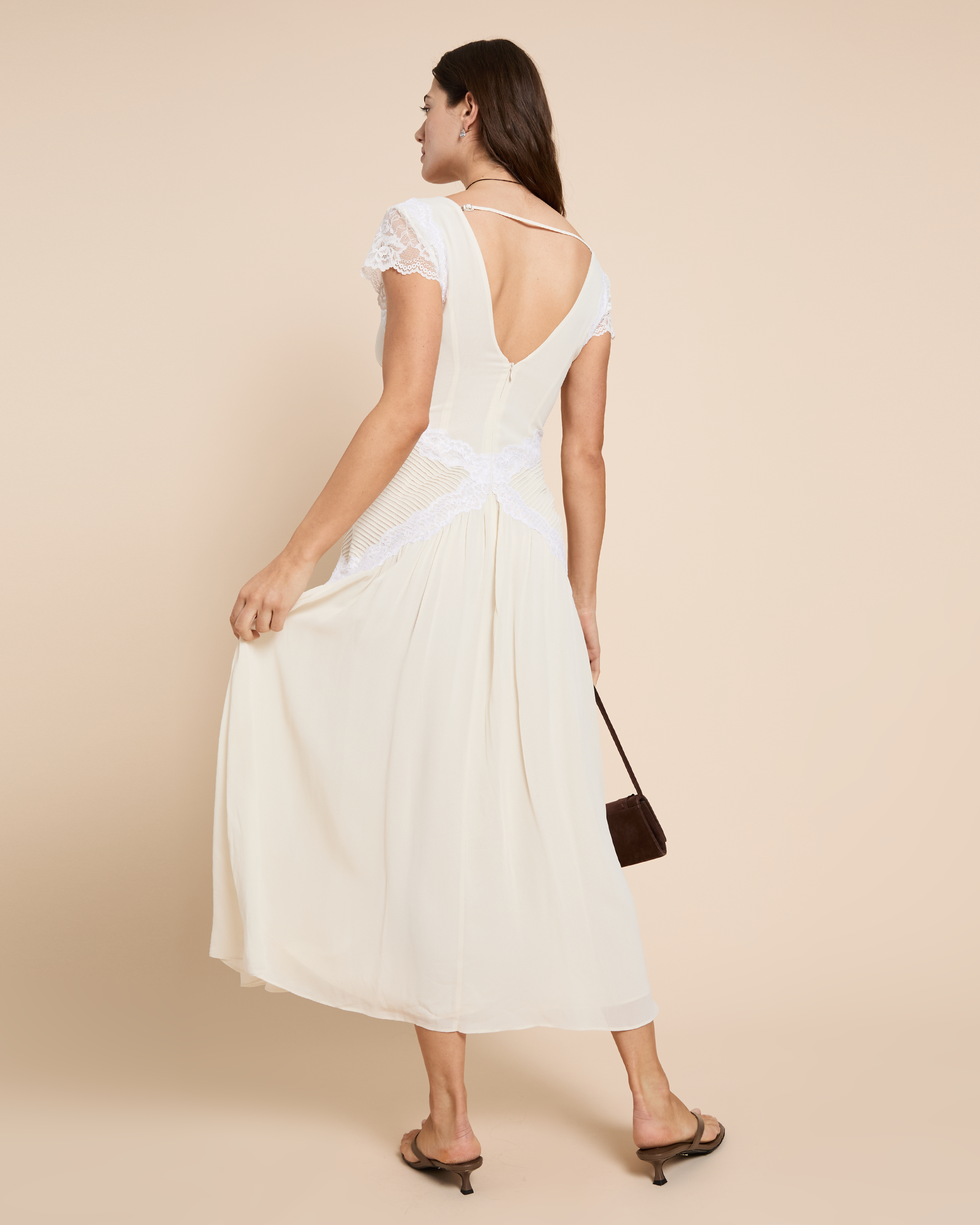 The Vaiana Dress is a dreamy masterpiece, featuring intricate detailing and stunning lace accents. Adorable cap sleeves add a touch of romance to this gorgeous design.