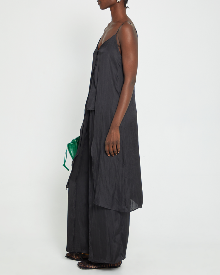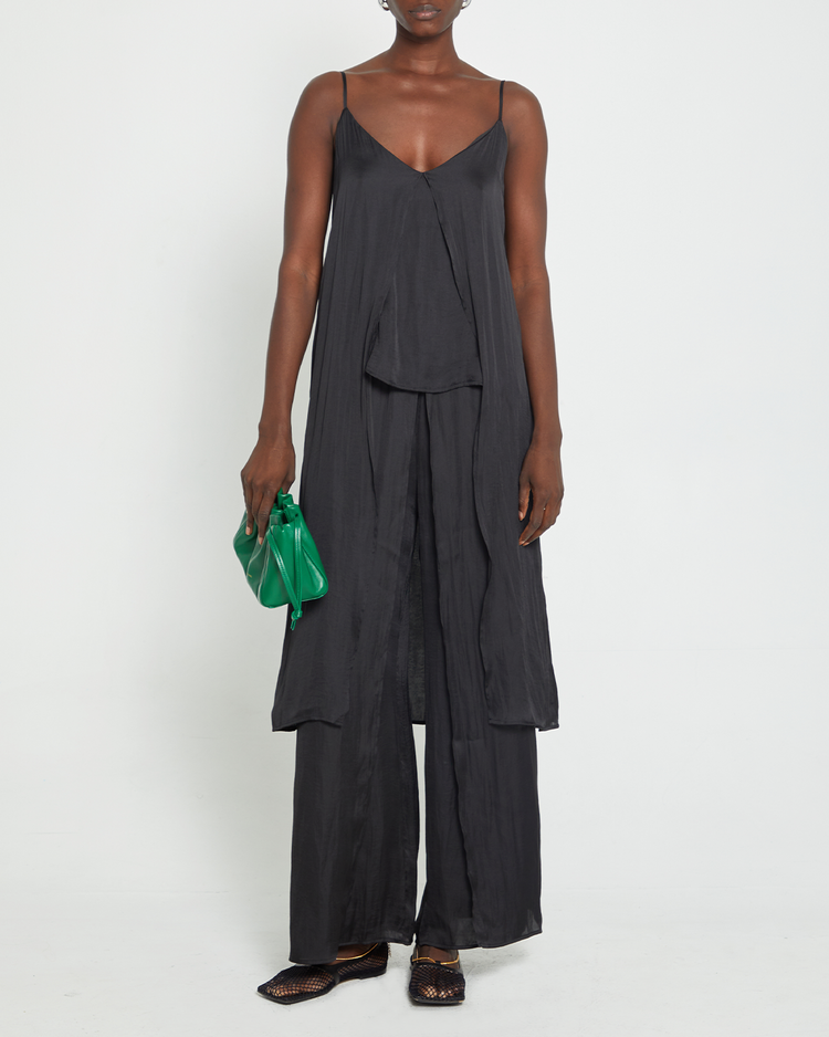 Our Victoria Set is made for a comfortable wear while keeping a fashionable style. It is crafted from a light and airy fabric, giving it a silky soft feel. It features pockets, an elastic waist, and adjustable straps for comfort and fit, while the flowy feel provides an effortless, chic look.